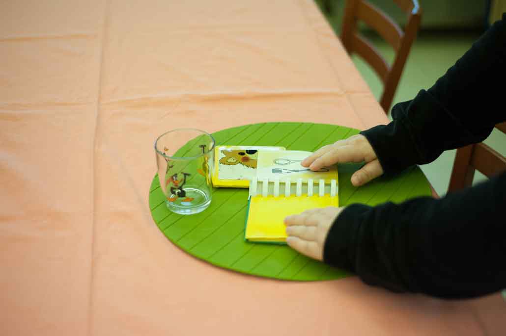 Si tratta di un sistema di comunicazione basato sul riconoscimento di immagini, utilizzato per lo più da persone con un residuo visivo. Lo scambio dei messaggi avviene attraverso l’uso di cartellini disegnati che rappresentano oggetti, azioni o situazioni rilevanti, come giocattoli o capi di vestiario, mangiare o lavarsi le mani, il parco giochi o il negozio.