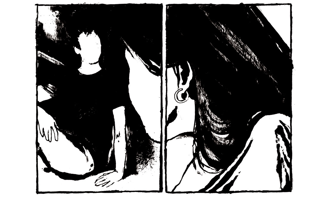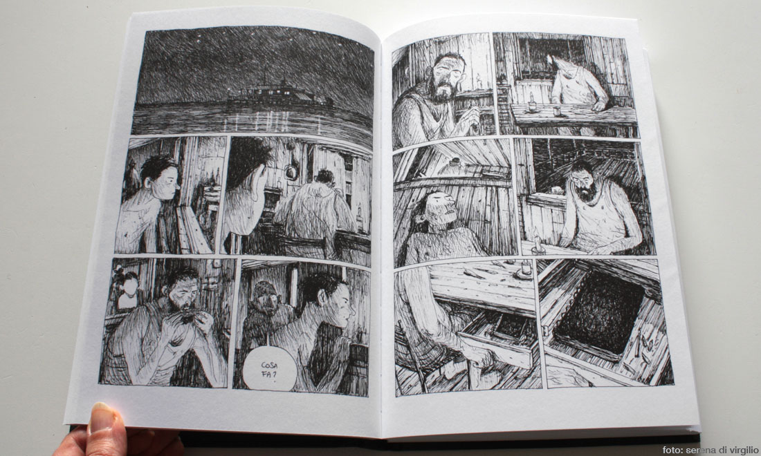 “I segni addosso” (in uscita per Becco Giallo) è invece una raccolta di racconti in cui Elena Guidolin usa il suo drammatico bianco e nero per parlare di tortura.