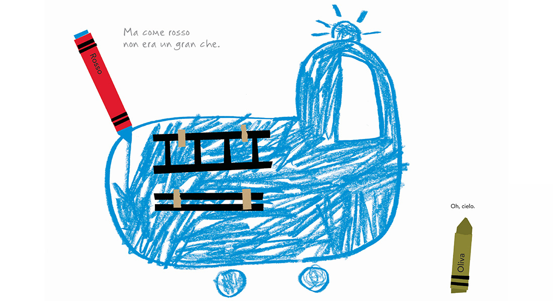 Rosso è la storia di un pastello a cera rosso, ma solo di facciata, perché il suo cuore è profondamente blu anche se nessuno ancora se ne è accorto.
