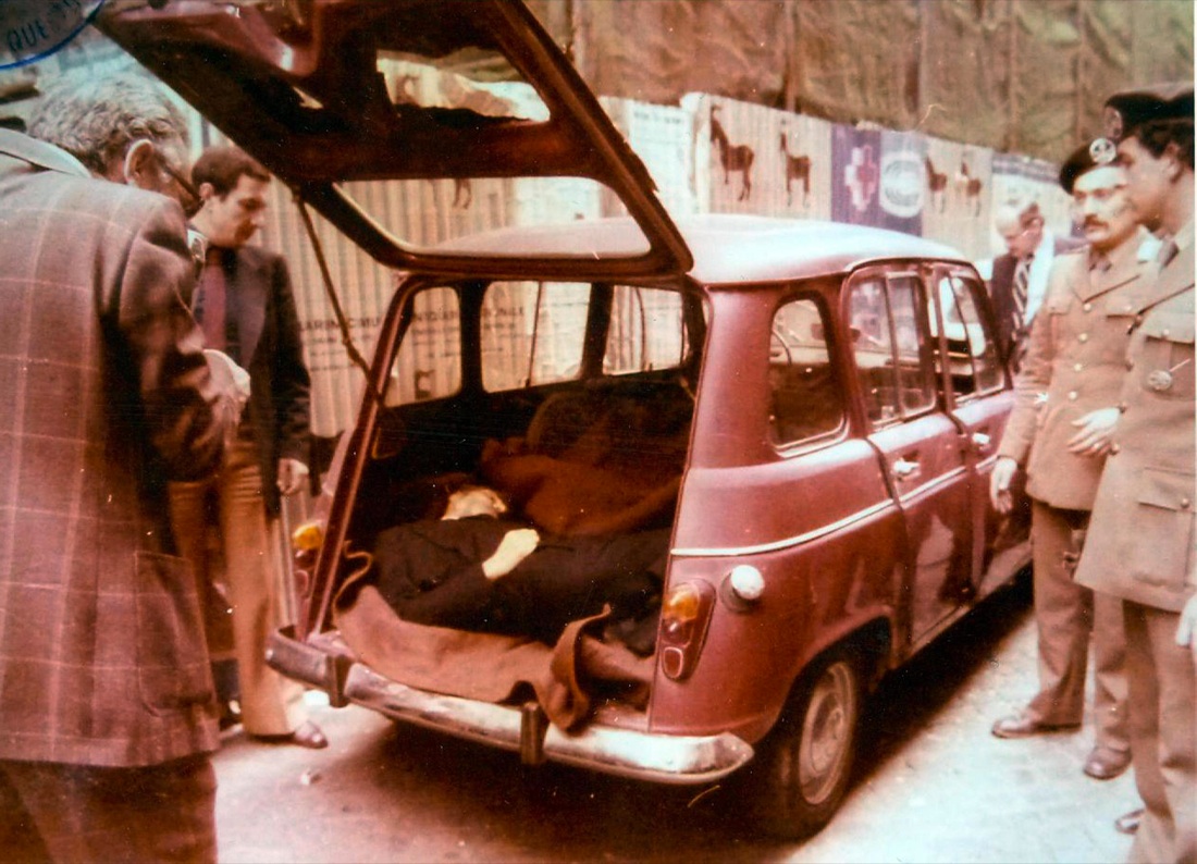 Roma, via Caetani. 9 maggio 1978. La Renault 4 dove giace il corpo di Aldo Moro è appena stata aperta dagli artificieri.