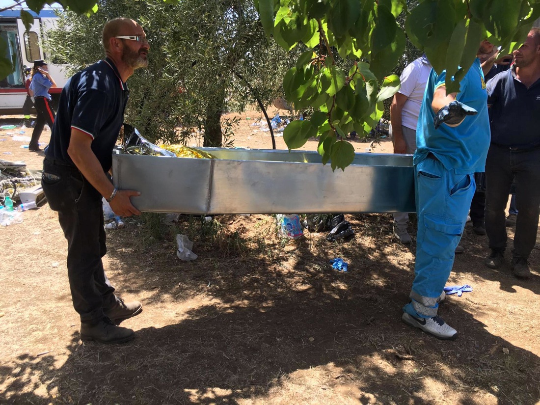 Il trasporto delle salme delle vittime dello scontro in Puglia, 12 luglio 2016