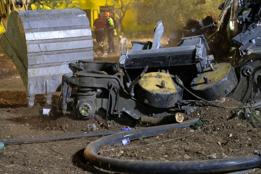 Le operazioni di rimozione dei rottami dei due treni regionali coinvolti nell’incidente ferroviario avvenuto ieri tra le campagne di Andria e Corato, 13 luglio 2016.