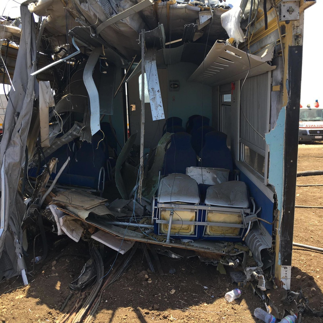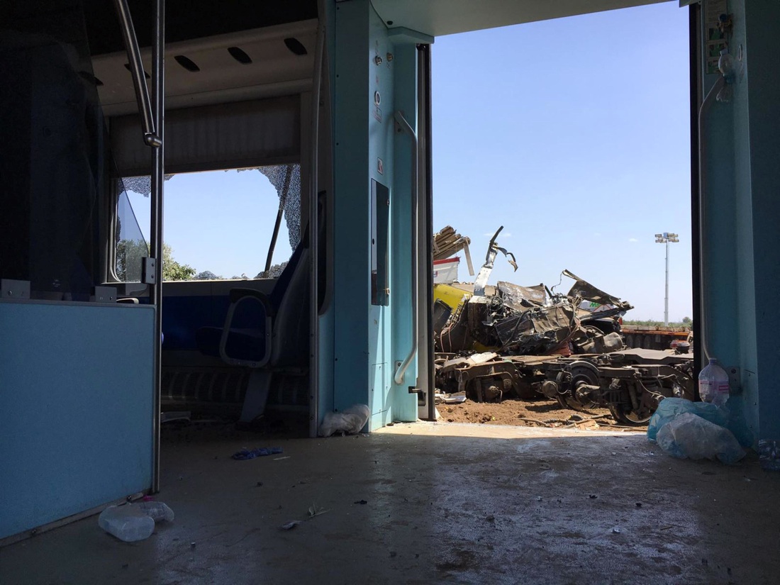 Il luogo dello scontro fra due treni in Puglia, 12 luglio 2016