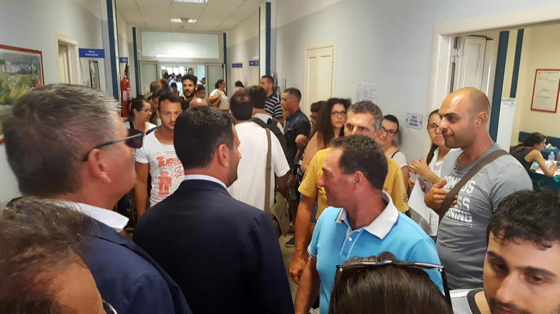 Il sindaco di Bari Antonio Decaro si reca al policlinico di Bari, al centro donatori di sangue, per ringraziare i tantissimi cittadini che dalle prime ore del mattino stanno donando, 13 luglio 2016.