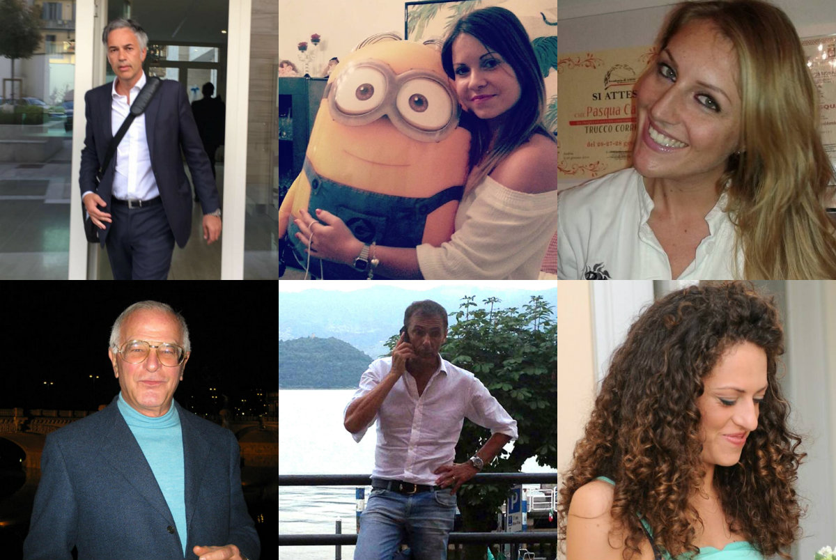 Alcune delle vittime dello scontro tra i treni in Puglia: dall’alto a sinistra, iun senso orario: Maurizio Pisani, Iolanda Inchingolo, Patty Carnimeo, Alessandra Bianchino, Salvatore Di Costanzo e Enrico Castellano