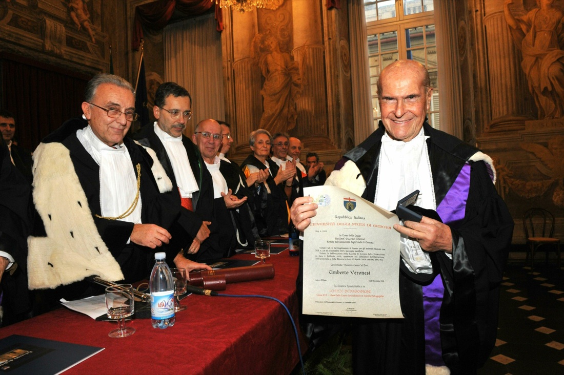L’oncologo Umberto Veronesi durante la consegna della laurea ad honorem in Scienze pedagogiche all’universit‡ di Genova, il 23 novembre 2009.