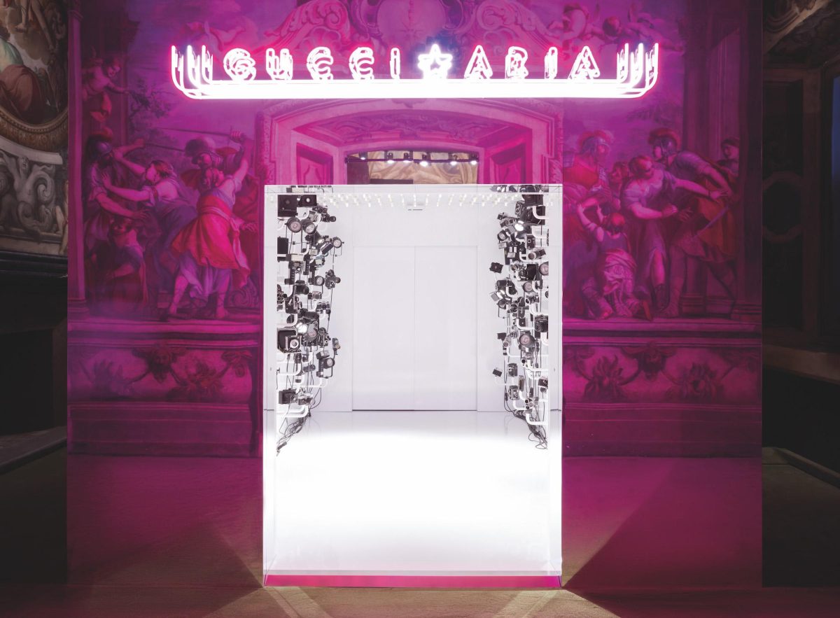 Il percorso inizia da «Gucci 100» – collezione nata per celebrare il centenario della maison – e, in un susseguirsi di allestimenti che riflettono ed esaltano l’unicità dell’estetica Gucci, termina con la presentazione di «The Hacker Project». L’esperienza prosegue nella “listening lounge”, una sala d’ascolto che celebra il profondo legame che da sempre Gucci intreccia con la musica. Al suo interno gli ospiti, circondati da espositori colmi di vinili, possono intraprendere un viaggio sonoro ispirato ai brani di alcuni degli amici della Casa: Harry Styles, Sir Elton John, Florence Welch, Achille Lauro e molti altri. La “listening lounge” offre inoltre la possibilità di scaricare una playlist realizzata in occasione dell’anniversario che celebra i 100 anni di Gucci, farsi una foto all’interno del photo booth che riproduce effetti ispirati ai pattern della collezione Gucci 100 e divertirsi con i videogame di Gucci Arcade.