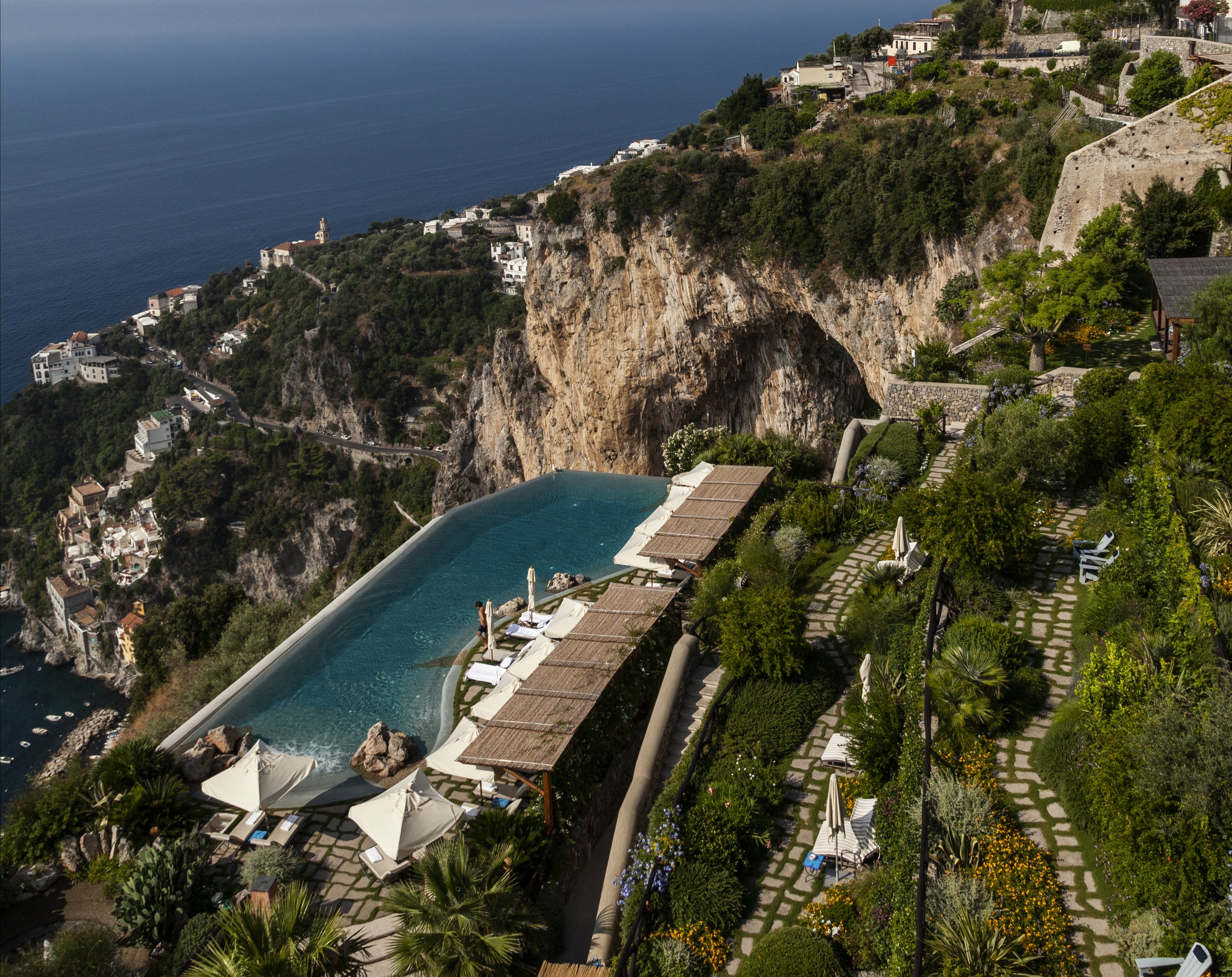 La storia lo data al XVII secolo, la geografia lo colloca a strapiombo su una delle scogliere più suggestive della costiera amalfitana. E’, per sua definizione un Boutique Hotel con Spa, restaurato con cura e dove l’ospitalità è al punto uno della to do list. Il tramonto è da incorniciare, la piscina a sfioro da godere nelle ore più calde, tra una lettura sui day bed del giardino e il terrazzo affacciato sul mare.
