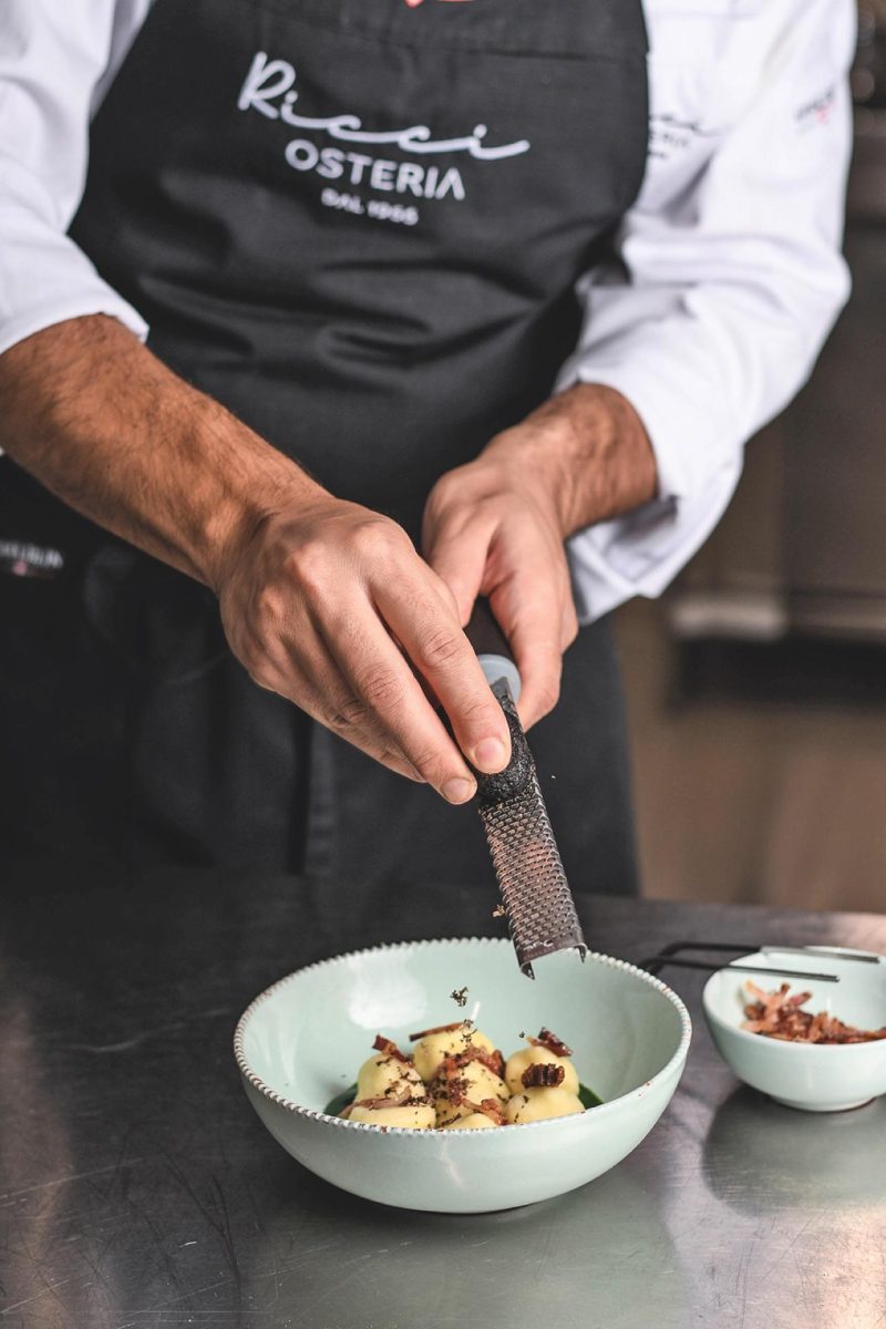 Ad arricchire un’altra zona a tutto food, via Sottocorno, ora c’è Ricci Osteria della coppia di chef Antonella Ricci e Vinod Sookar, direttamente dal Fornello da Ricci a Ceglie Messapica, ovvero la prima stella Michelin di Puglia. Qui, seguito dal resident chef Francesco Bordone, il menù cambia quattro volte l’anno in base all’appuntamento con le stagioni, ma si trovano sempre le famose gocce di ricotta avvolte nella semola (adesso con crema di bietole , pancetta croccante e tartufo nero), piatto «signature» della casa fin dal 2002. Per il resto qualità e porzioni vere. Ottimo e abbondante, come si suol dire.