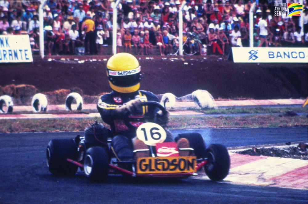 Ayrton Senna affronta una variante con il suo kart DAP, motorizzato dal monocilindrico a due tempi di 100cc di costruzione Parilla. La marca di motori per kart utilizzata da Senna è italiana al 100% e deriva dalla gloriosa marca mantovana di motoleggere degli anni 50-60.