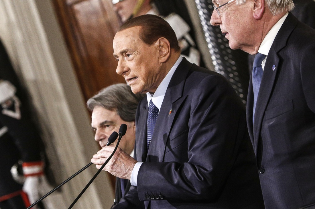 Da sinistra: Renato Brunetta, Silvio Berlusconi e Paolo Romani di Forza Italia – 10 dicembre 2016