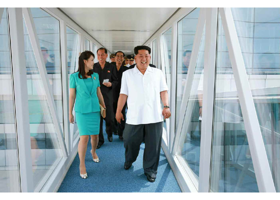 Kim Jong un , il dittatore della Corea del Nord, circondato dai piloti dell’esercito nordcoreano