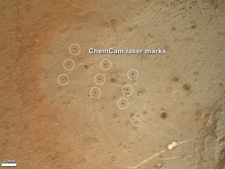 Le tracce delle perforazioni di Curiosity sul suolo di MArte