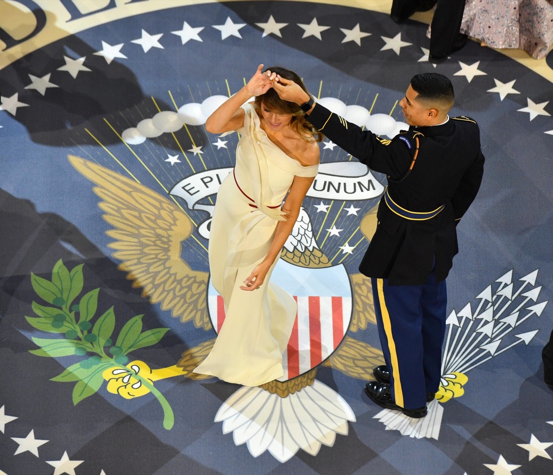 La neo First Lady Melania Trump danza con un Marine al Freedom Ball. Washington, 20 gennaio 2017