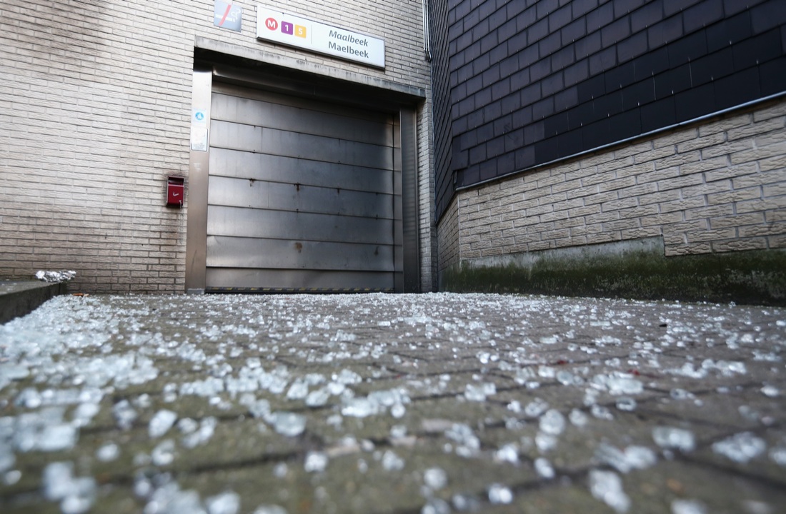 Bruxelles, 22 marzo 2016: vetri rotti per l’esplosione all’ingresso della fermata del metro di Maalbeek