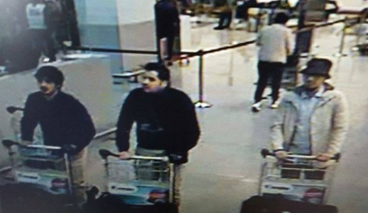 I presunti attentatori ripresi dalle telecamere di sicurezza dell’aeroporto. Najim Laachraoui è a sinistra Bruxelles, 22 marzo 2016