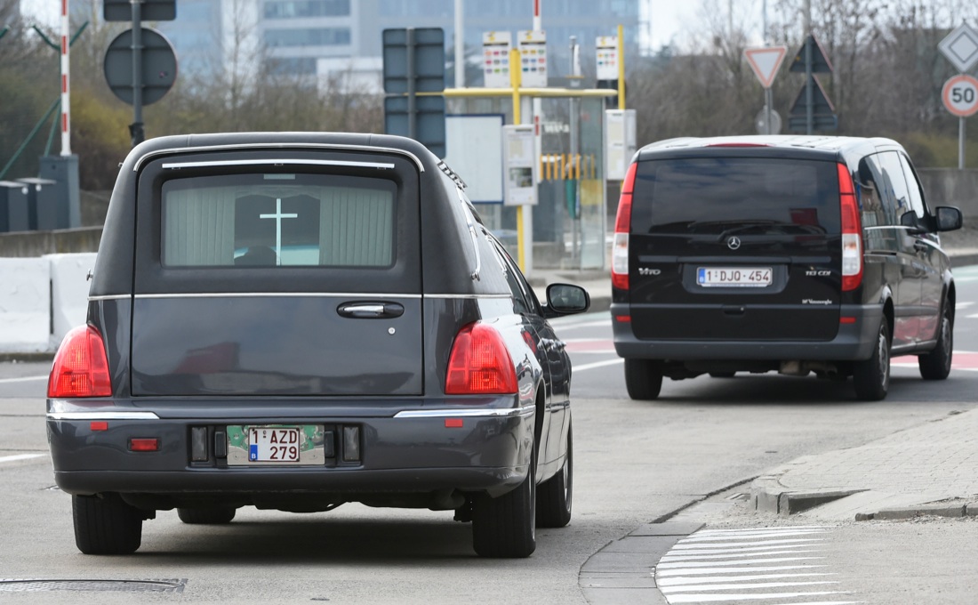 Bruxelles, 22 marzo 2016, carri funebri per il trasporto delle vittime dell’attentato all’aeroporto di Zaventem