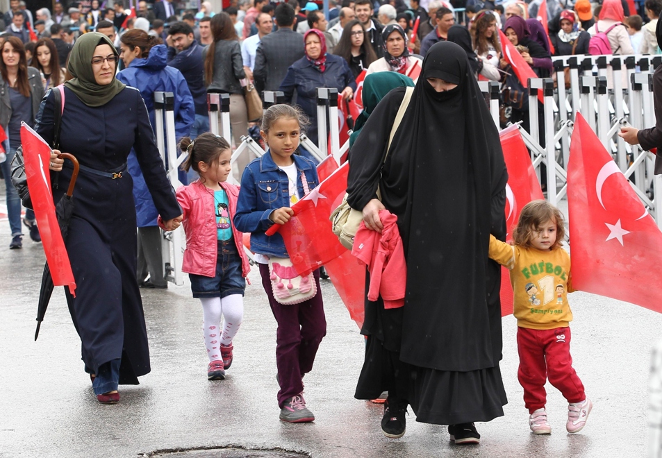 Istanbul. Donne velate partecipano a un comizio elettorale dell’AKP, il partito islamico di ErdoganADEM ALTAN/AFP/Getty Images