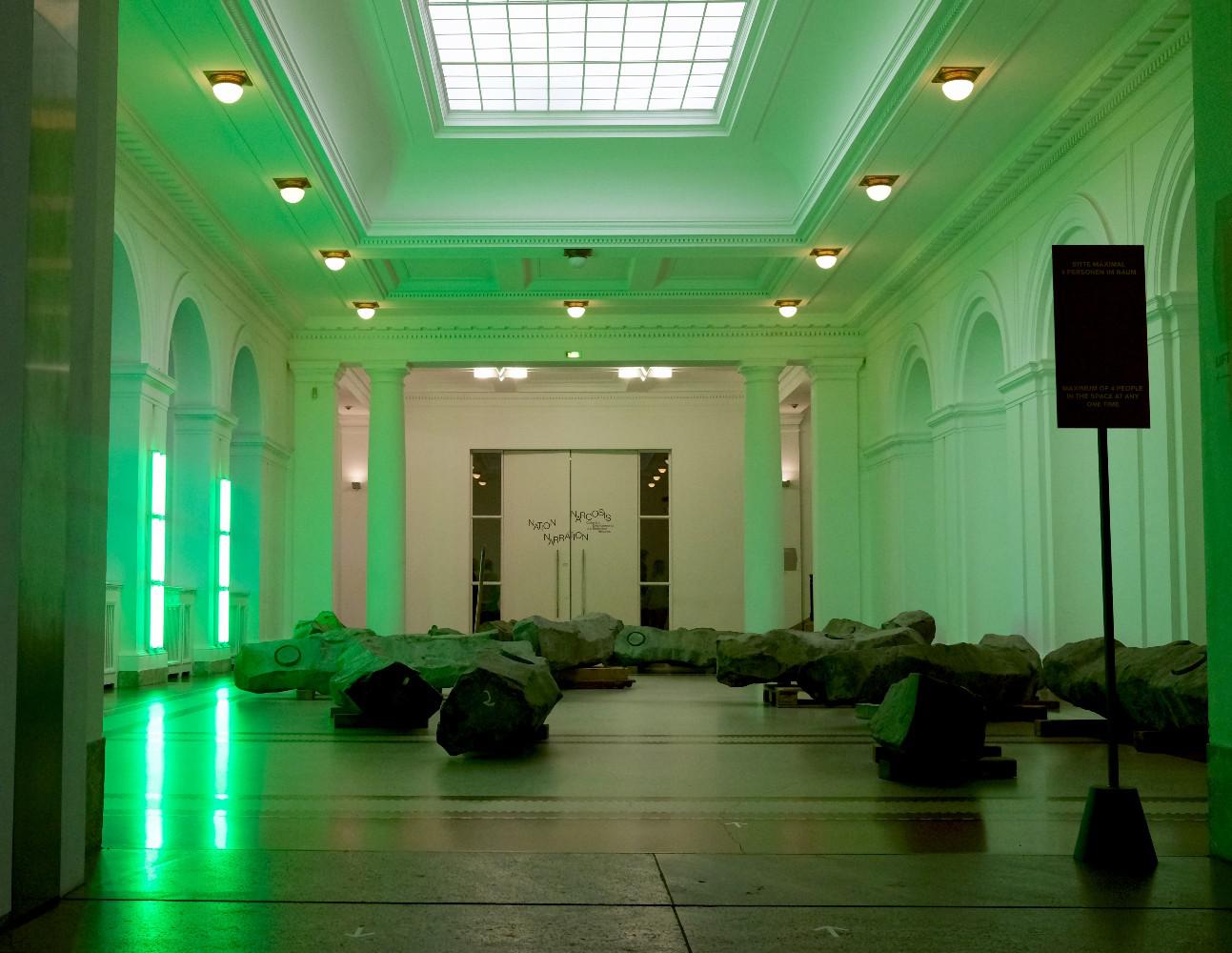 Se non siete ancora paghi, qualche ora – magari del secondo o terzo giorno, c’è un limite alla frenesia – merita di essere dedicata all’Hamburger Bahnhof (una stanza, sotto), ex stazione ferroviaria trasformata in una collezione di arte contemporanea. Tanto interattiva quanto contemplativa: qui le opere sono da camminare, attraversare, osservare in piedi, da seduti, sdraiati su grandi cuscini disposti sul pavimento.