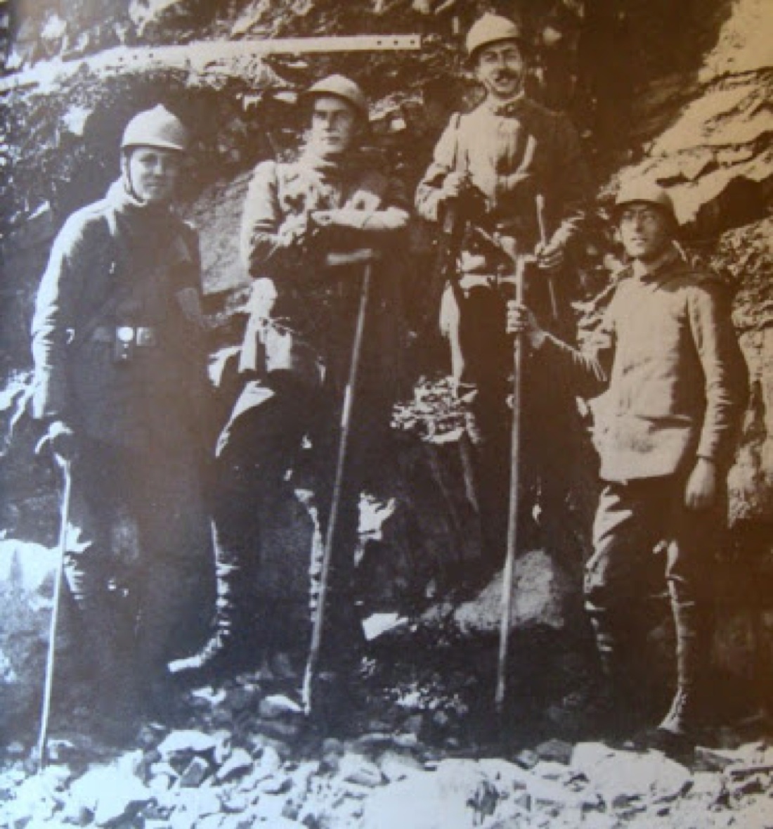 Il comando del reparto del Genio artefice della mina del 1916. Il secondo da sx è il Tenente Gelasio Caetani di Sermonta. Sarà insignito della Medaglia d’argento e negli anni 20-30 senatore e ambasciatore italiano a Washington.