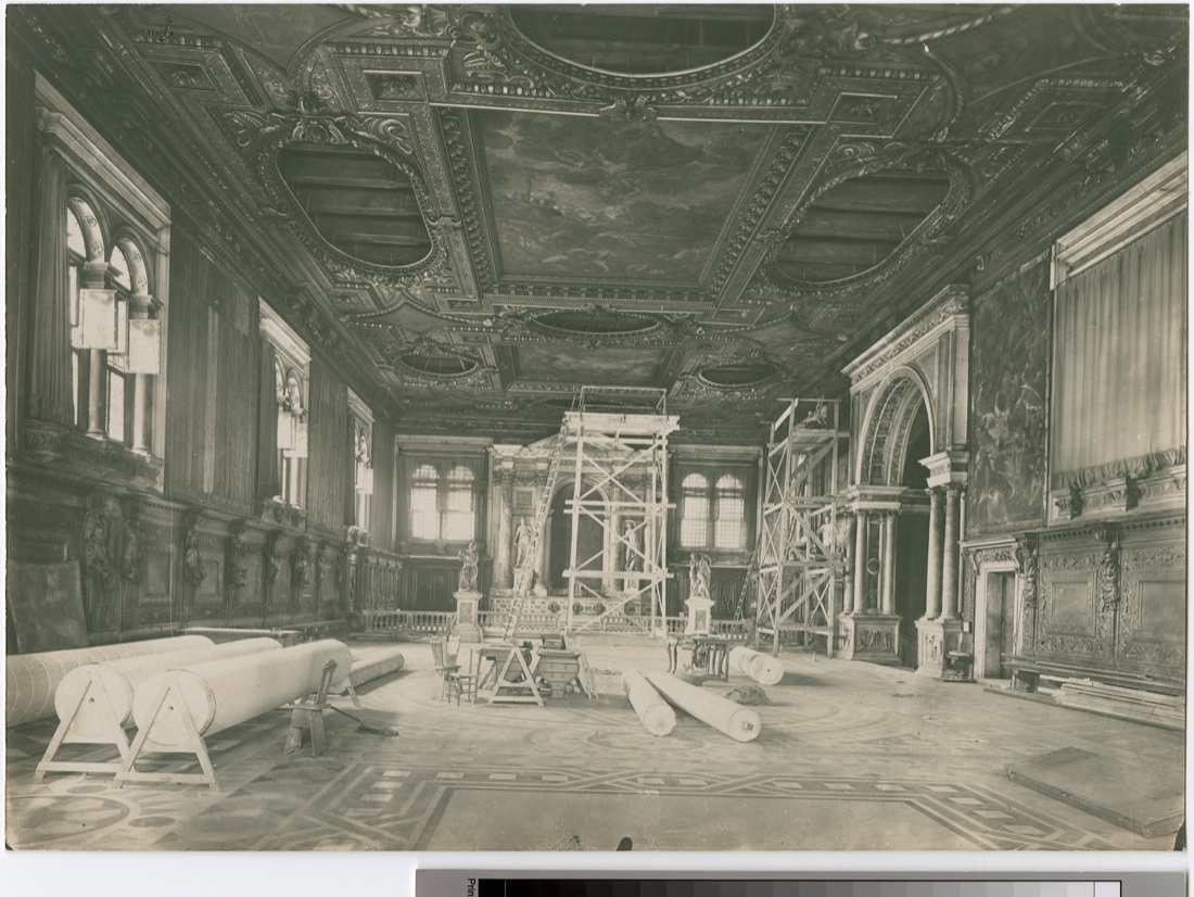 Scuola Grande di San Rocco. Interno. Una delle fasi dell’operazione di asporto dei dipinti dal soffitto