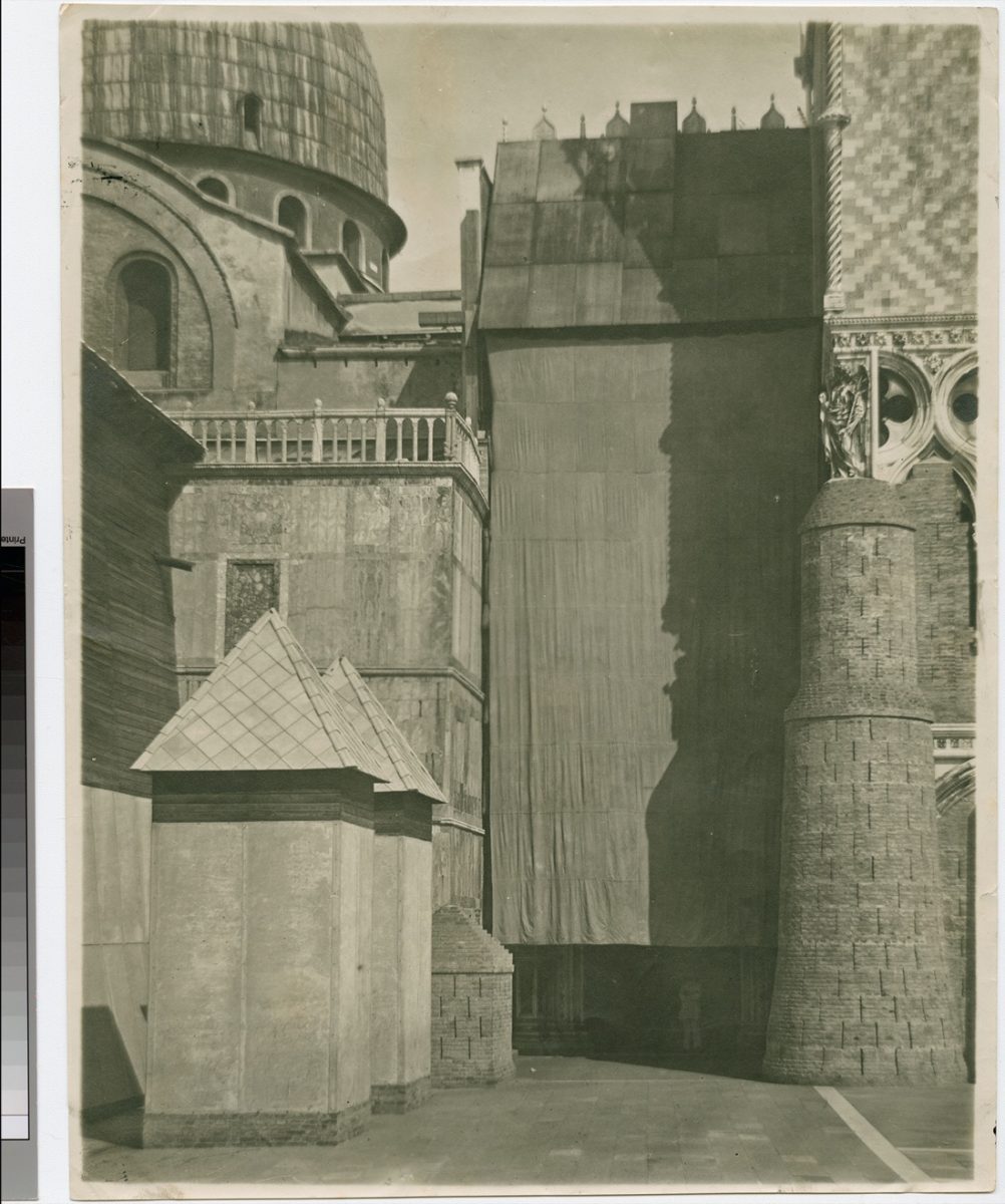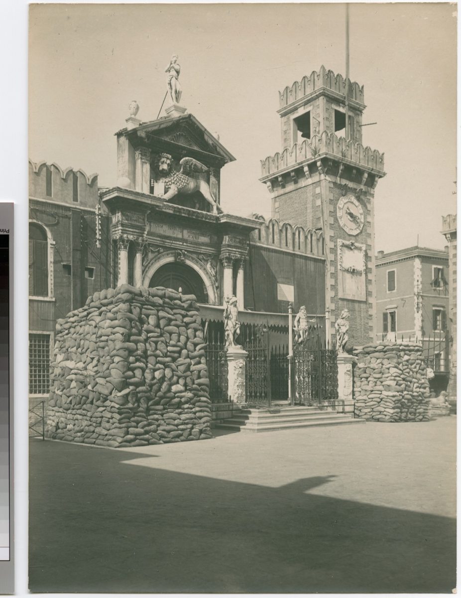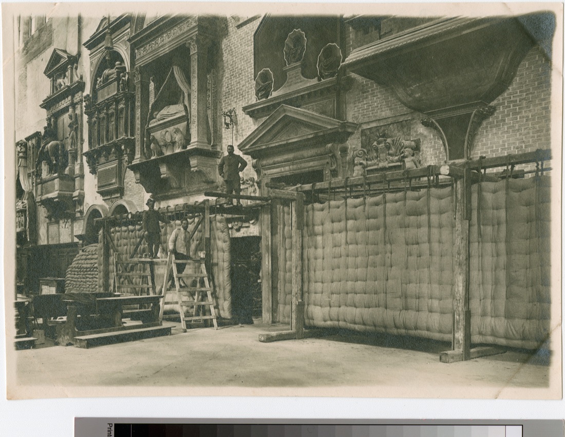 Il bombardamento del 1916, operato dagli Austroungarici per ritorsione dopo la presa di Gorizia, fece correre ai ripari (dove e come possibile) le autorità cittadine con la protezione dei più importanti monumenti con sacchi di sabbia e impalcature. I dipinti dal valore artistico inestimabile vengono imballati e trasferiti, compresi i cavalli bronzei di Piazza San Marco.