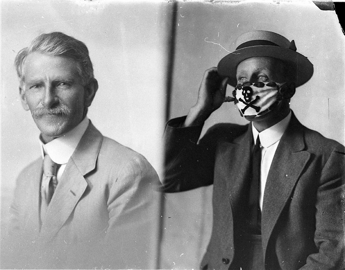 Segretaria al lavoro con la mascherina nel 1918