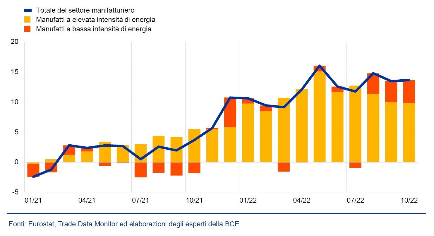Difficoltà certificate anche nel recente Bollettino economico della Bce che rileva “segnali del fatto che le importazioni, soprattutto di beni intermedi, abbiano in parte rimpiazzato la produzione manifatturiera locale nei settori a maggiore intensità energetica” nella UE. L’analisi segnala che in Germania a metà del 2022 l’industria chimica avrebbe iniziato a importare ammoniaca anziché produrla, a causa dell’elevato volume di gas necessario alla sua fabbricazione.