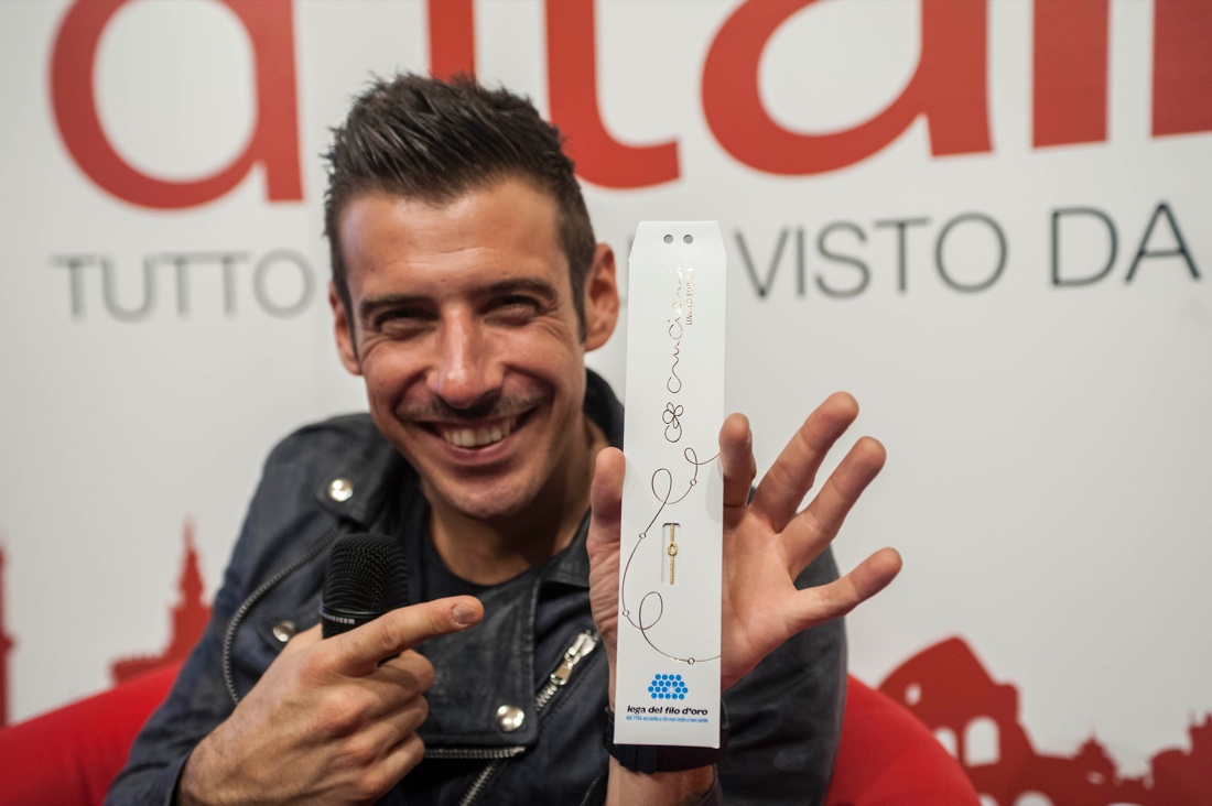 Francesco Gabbani con il bracciale Cruciani realizzato per Panorama d’Italia in beneficienza per la Lega del Filo d’oro
