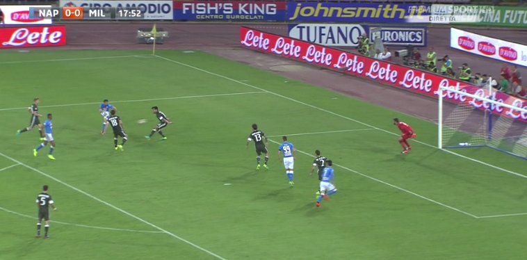 Napoli-Milan: Milik in posizione regolare sulla conclusione di Mertens da cui nasce la rete dell’1-0