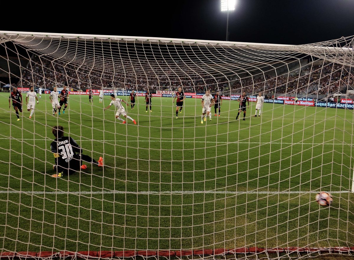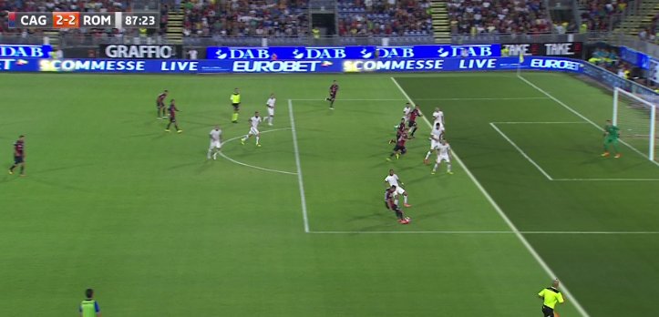 Perotti realizza il rigore contro il Cagliari: terzo concesso nelle prime due giornate alla Roma