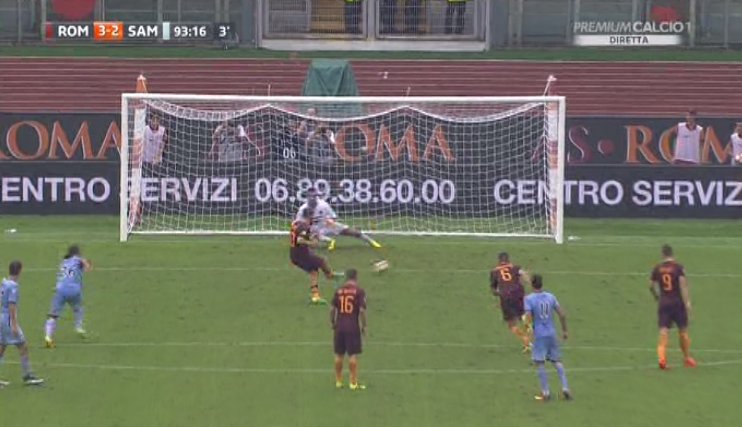 Totti realizza il rigore della vittoria per la Roma al minuto 93