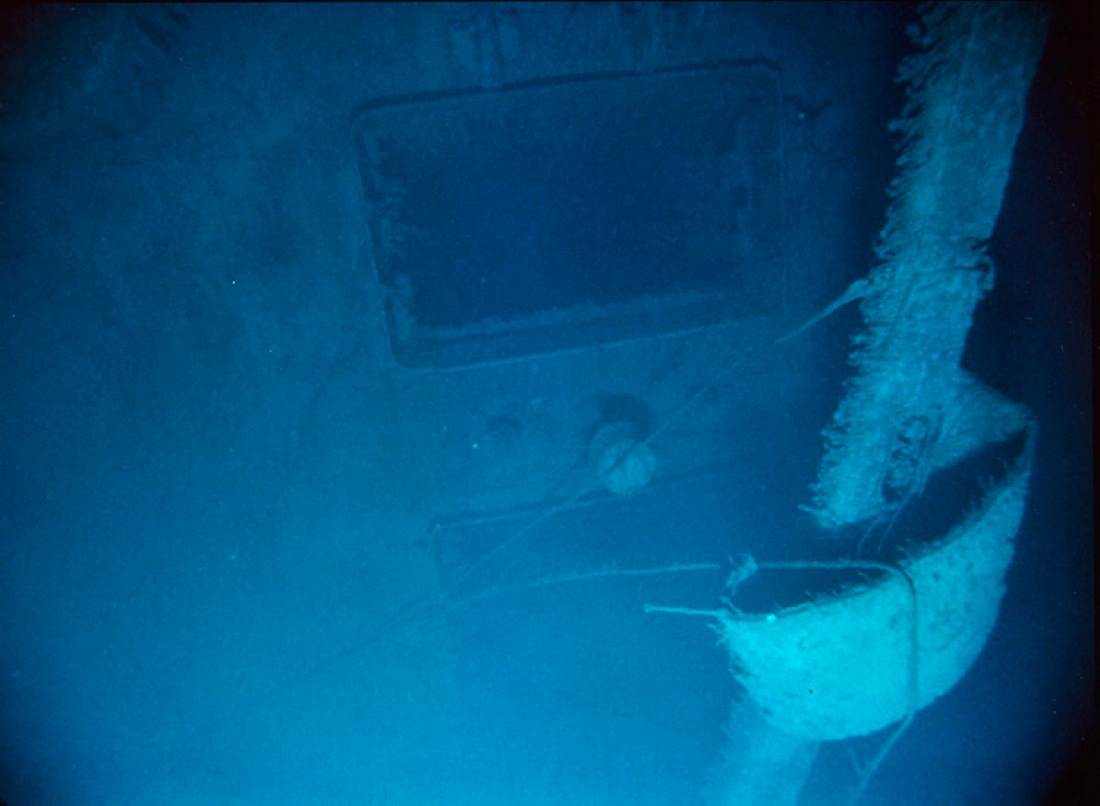 Dettaglio della paratia del Comandante collassata dopo l’affondamento del 14 aprile 1912.
