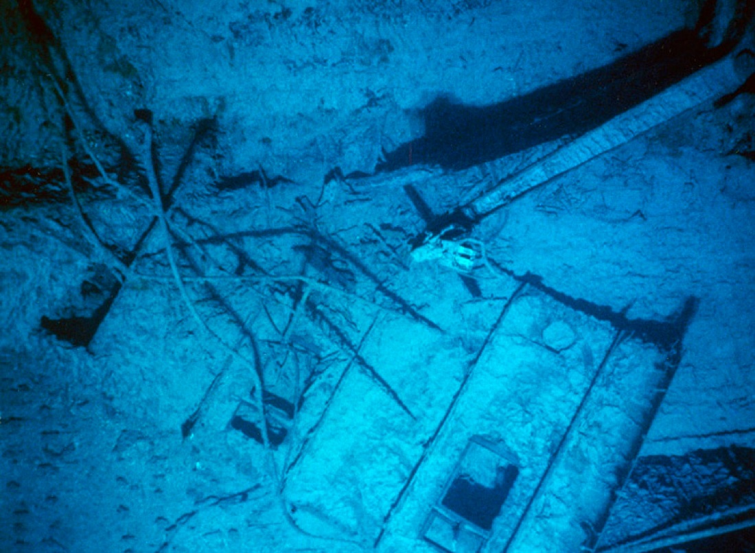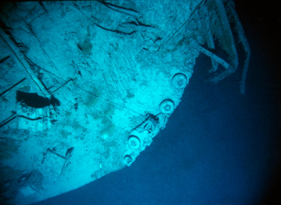 Sezione di poppa del Titanic, che si staccò dal resto dello scafo spezzatosi durante il naufragio. La sezione giace a circa 600 metri di distanza dalla prua sul fondale dell’oceano.