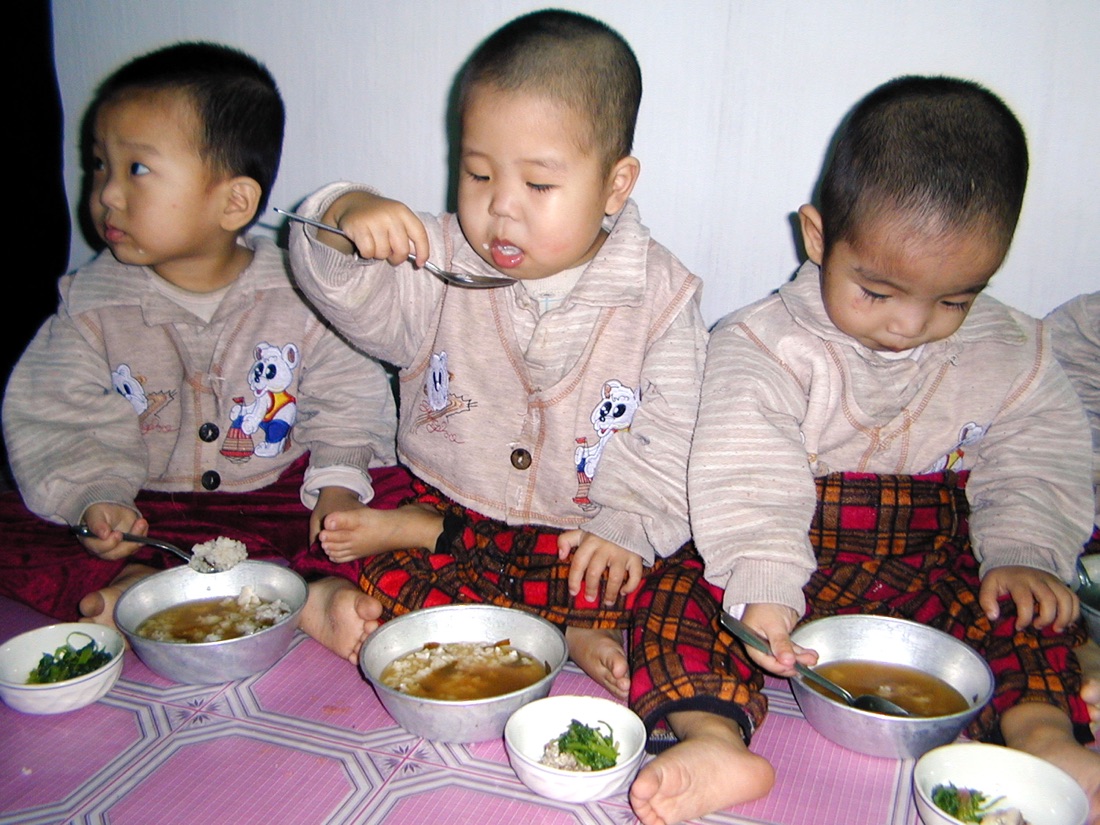 Ryongchon, 23 aprile 2017 – Bambini che mangiano alla mensa dell’orfanotrofio in in Chungjin, Corea del Nord