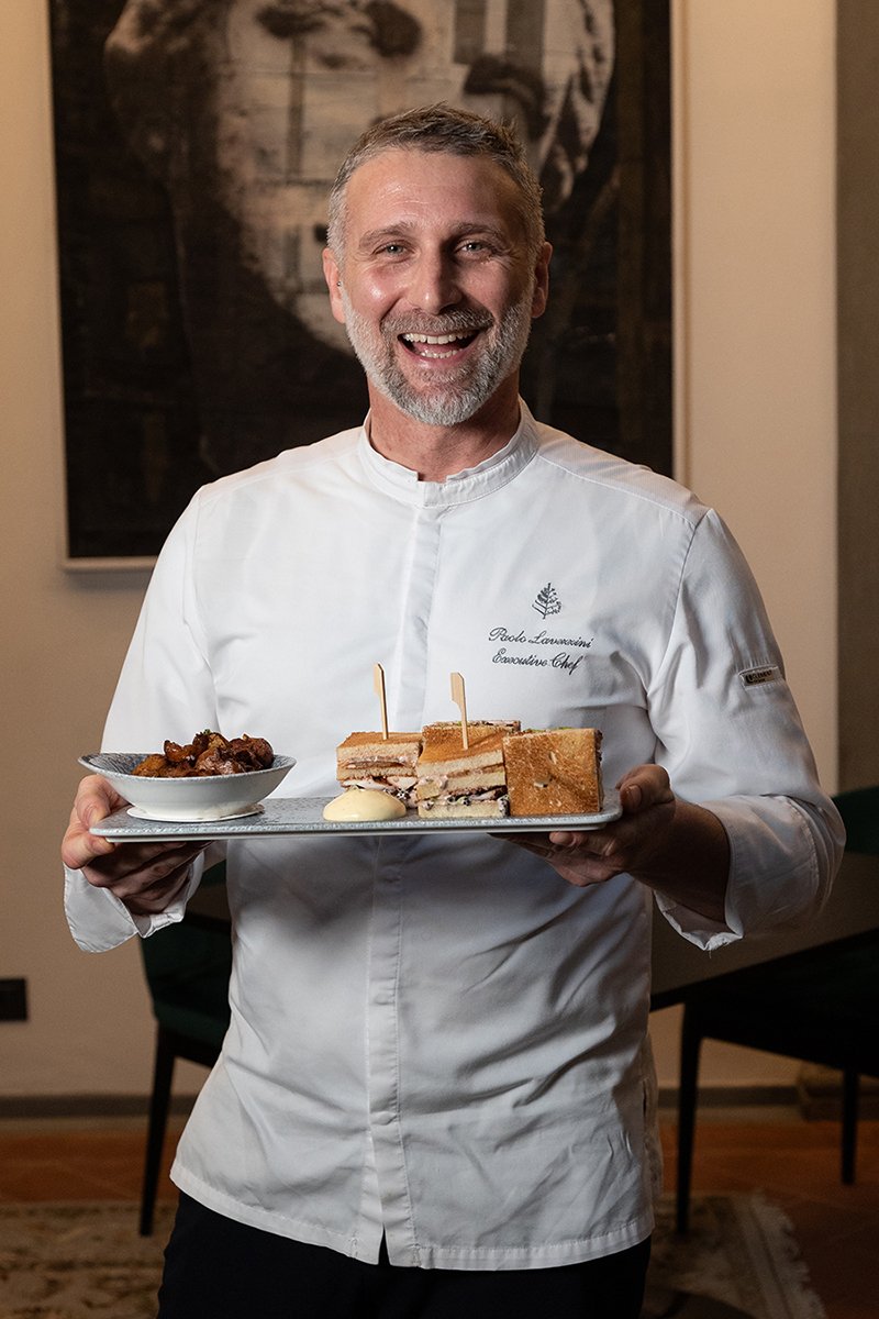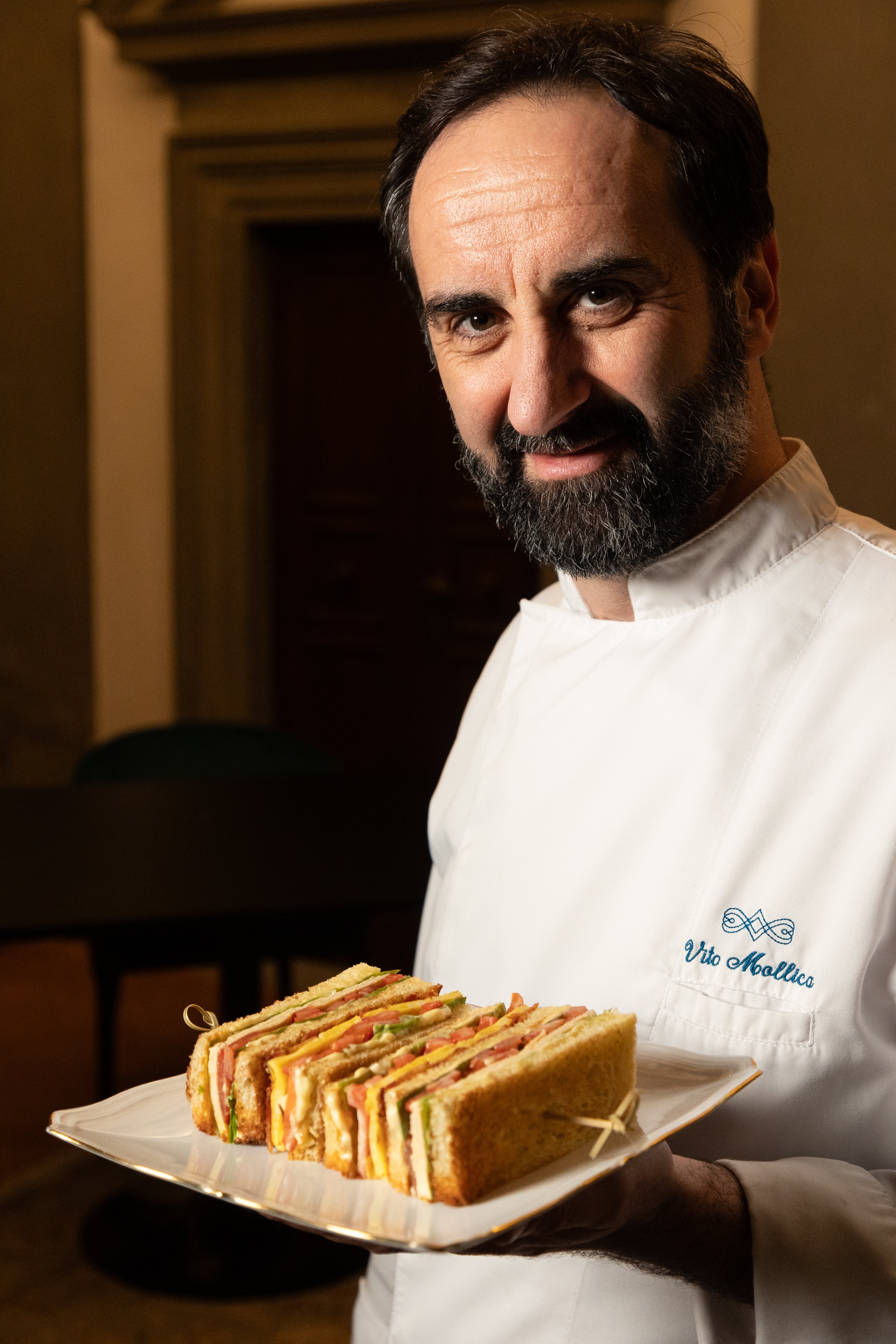 Ineccepibile anche quello indiscutibilmente classico, nella forma e nella sostanza, dello chef Alessandro Liberatore del ristorante Le Bistrot di Villa Cora, servito con foglioline di tenera insalata. E a proposito di contorno, è quasi inutile ricordare la metà perfetta del club sandwich, ovvero le mitiche patatine, ancora meglio se fritte con la buccia. Tra gli chef, c’è stato anche chi come Stefano Ballarino, del ristorante il Verrocchio e L’Oliveto dell’Hotel Villa La Massa, ne ha fatto una versione classico-autoctona utilizzando, tra gli altri ingredienti, il pane di Montespertoli e i pomodorini fiorentini costoluti. Un tocco di Salento lo ha messo Gentian Shehi del Winter Garden (The St. Regis Florence) con una salsina di cime di rapa, con il polpo alla griglia, la burrata, i pomodori confit e un velo di seppia. Variazioni che non mutano la straordinaria funzione di questo sanwich: regalare al palato, e allo spirito, puro piacere. Alle cinque del pomeriggio o nel pieno della notte.