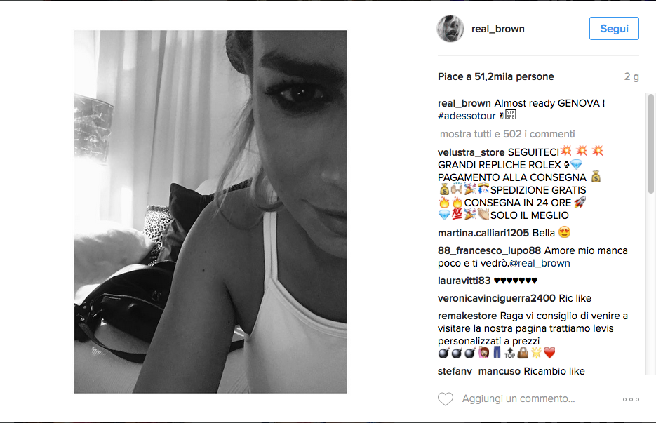 Sono bastati dunque un paio di scatti a mandare in visibilio i suoi 2,4 milioni di seguaci ma, come da copione, non sono mancati i commenti più o meno beceri conditi da insulti e prese di posizione volgari. La Marrone però non è una che le manda a dire e anche in questa occasione ha affrontato a muso duro i suoi haters, replicando in particolare ad una commentatrice compulsiva e offensiva: “Complimenti signora. Ceedo che ha anche dei figli…ottimo esempio. Insultare una ragazza prima che un’artista che ha semplicemente svolto il suo lavoro con orgoglio e impegno. Quindi degli altri insulti delle ragazzine non mi stupisco… io sarò anche truzza, camionista ma voi siete lo specchio di una società cattiva, maleducata e infelice!“.