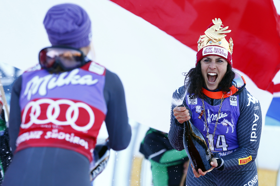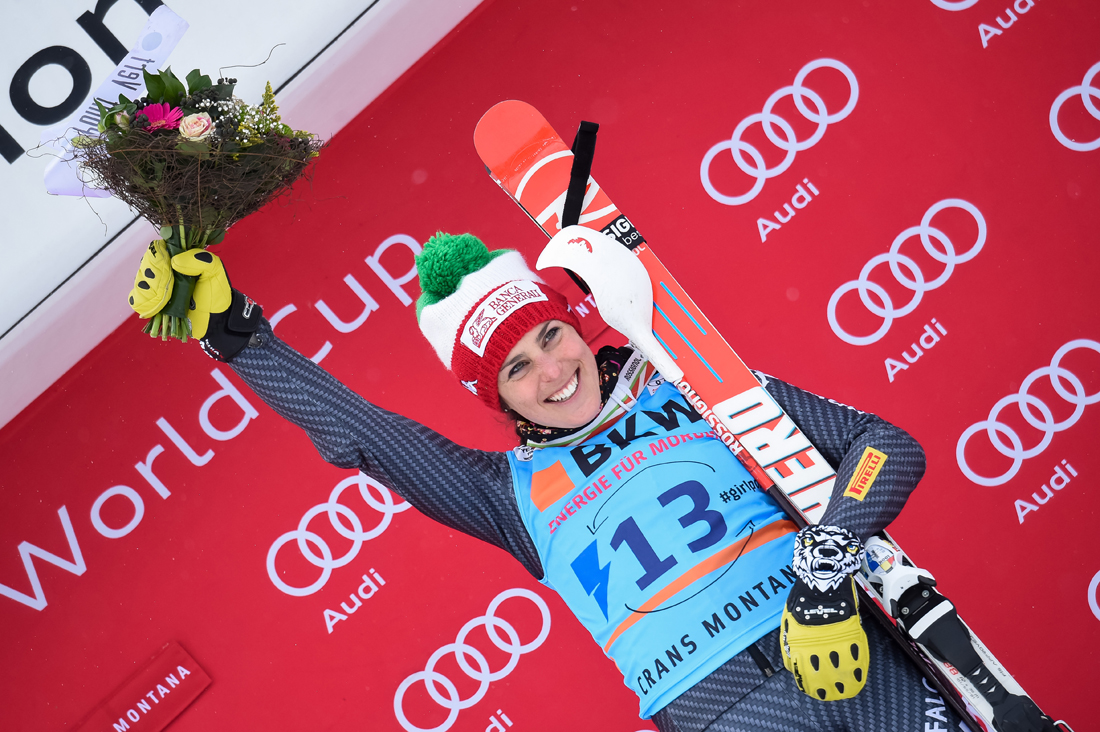 24 febbraio 2017: Federica Brignone sul gradino più alto del podio nella combinata di Crans-Montana