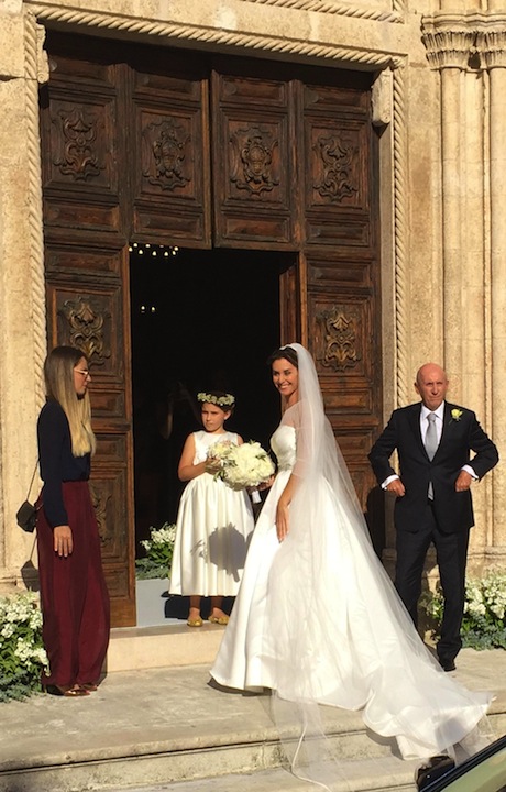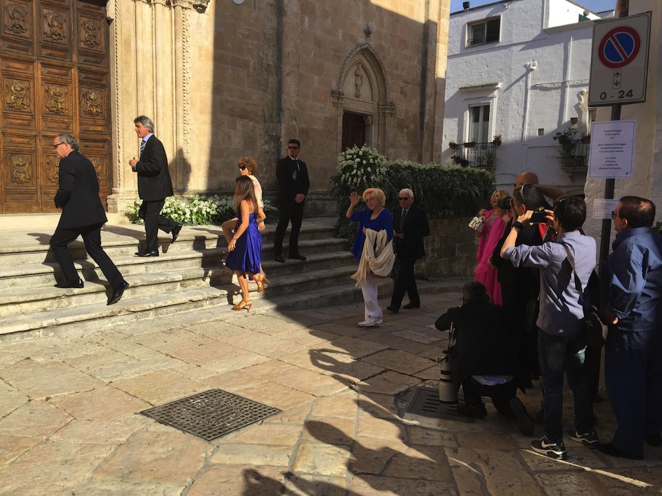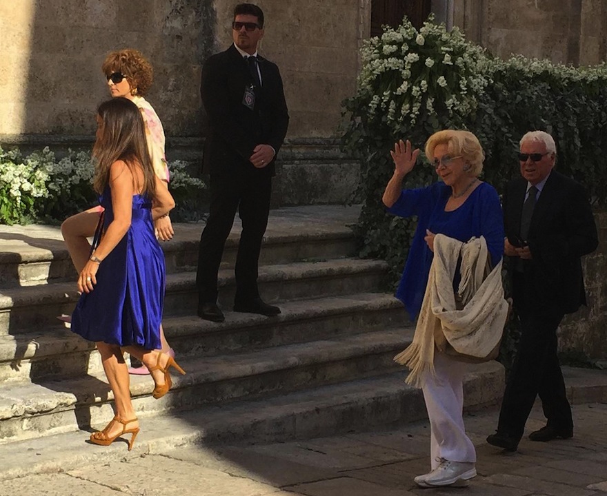 Lea Pericoli e Nicola Pietrangeli arrivano alla Cattedrale di Ostuni per il matrimonio di Flavia Pennetta e Fabio Fognini