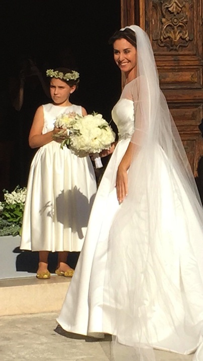 Abito bianco di Atelier Emè con lungo velo per lei e completo blu per lui. Hanno scelto il più classico dei classici Flavia Pennetta e Fabio Fognini per il loro matrimonio.