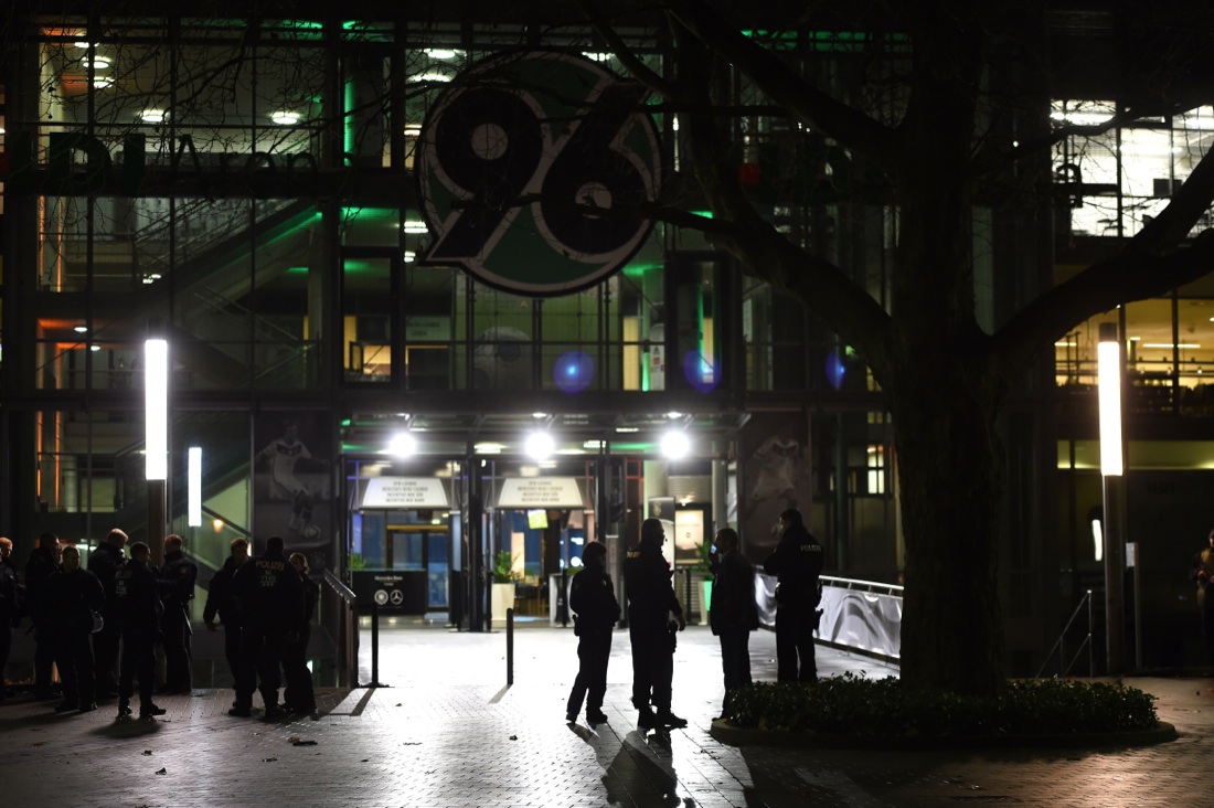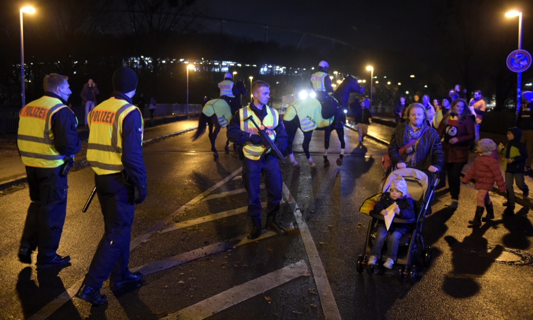 La polizia all’uscita dello stadio di Hannover, 17 novembre 2015