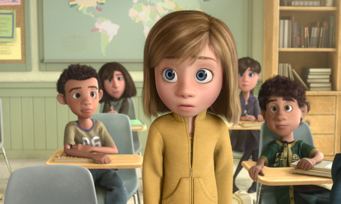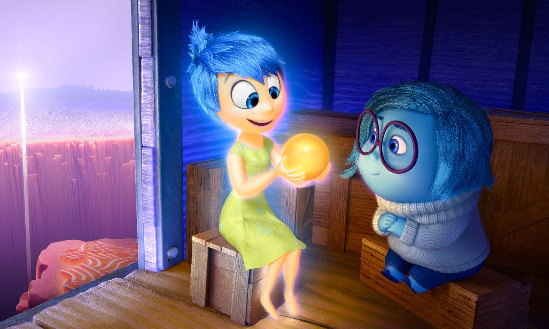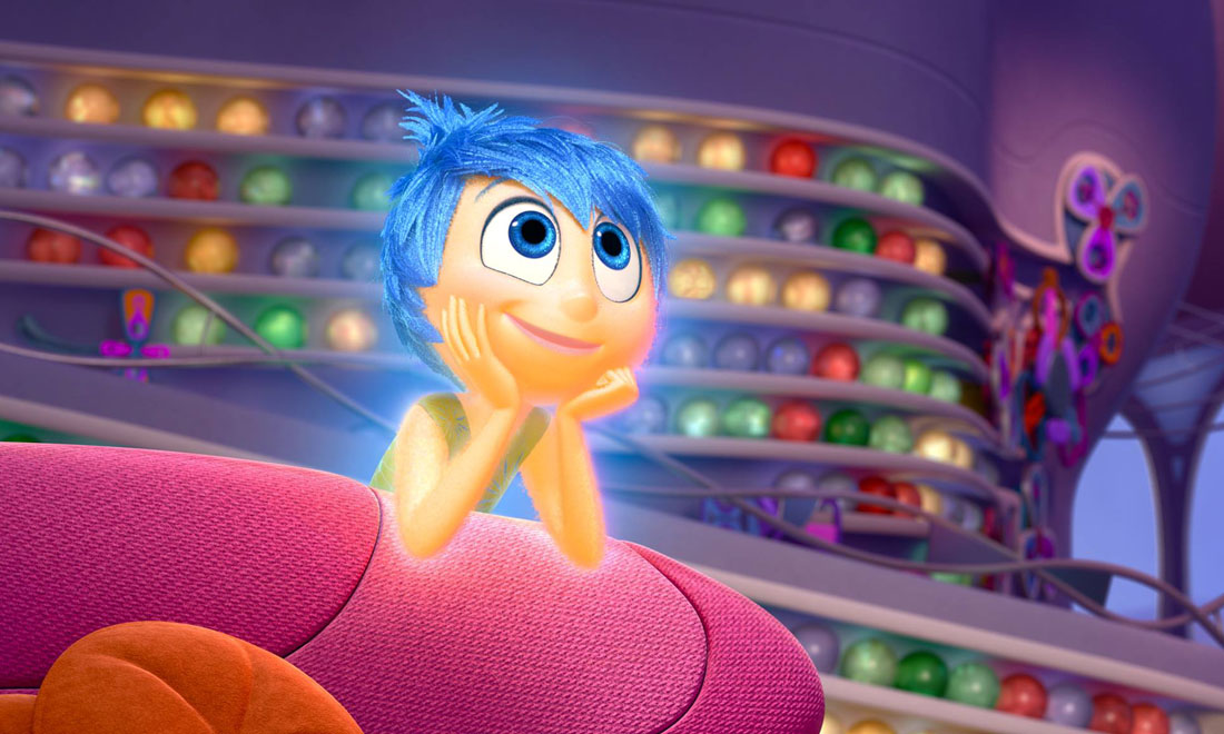 Inside Out ci porta nella testa dell’undicenne Riley. Nel quartier generale, a governare le reazioni della bambina c’è un affiatato e buffo quintetto di emozioni antropomorfe: la leader è Gioia, solare, con corpo da fata; accanto a lei ci sono Tristezza, blu, bassa e tondetta, occhialoni e maglione a collo alto, sempre giù di morale; Paura, che tiene in guardia Riley, è viola e magrissimo e pronto a drammatizzare su tutto; Rabbia è tarchiatello e ovviamente rosso, in camicia e cravatta; Disgusto è verde e stilosa. Sono solo cinque le emozioni immaginate dalla Pixar alla guida dell’umanità eppure sono una sintesi perfetta.