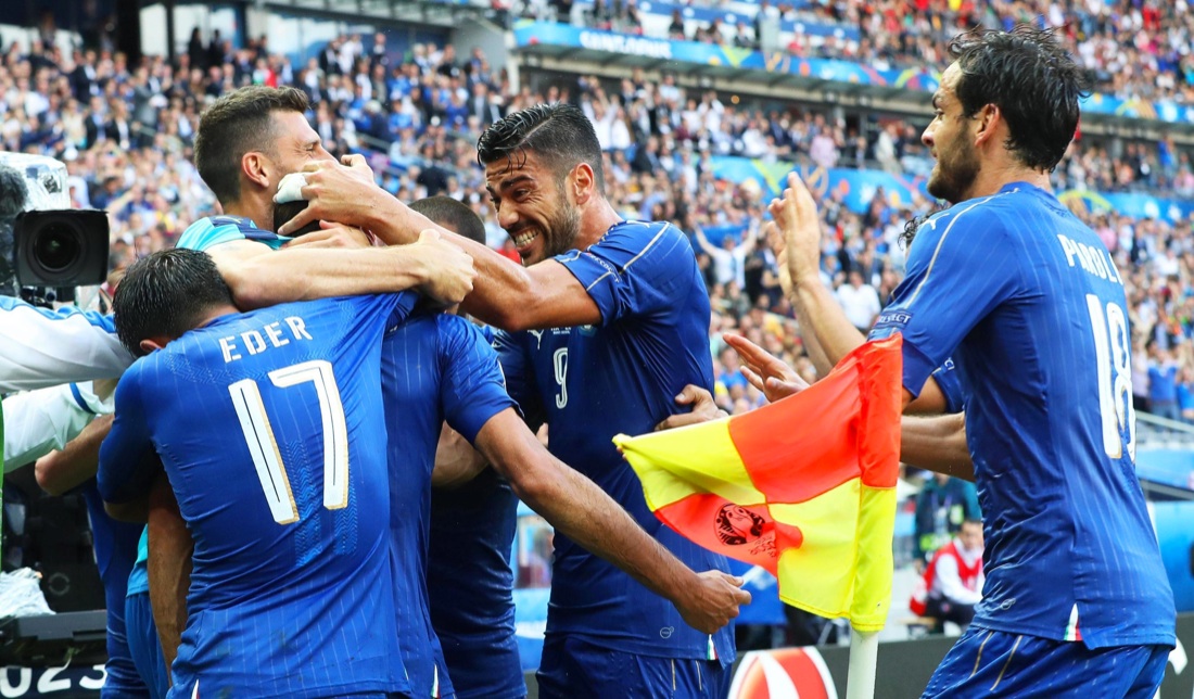 Poi, dopo aver corso il rischio di subire il pareggio proprio nel finale, ecco arrivare il goal che fa esultare tutta Italia: nel classico ribaltamento di fronte, Pellè si trova con la palla da ribattere in porta e non sbaglia il colpo. E’ il 2-0 che nel primo minuto di recupero mette la parola fine alla sfida e manda in visibilio i tanti tifosi presenti allo Stade de France e i tantissimi davanti alla Tv.