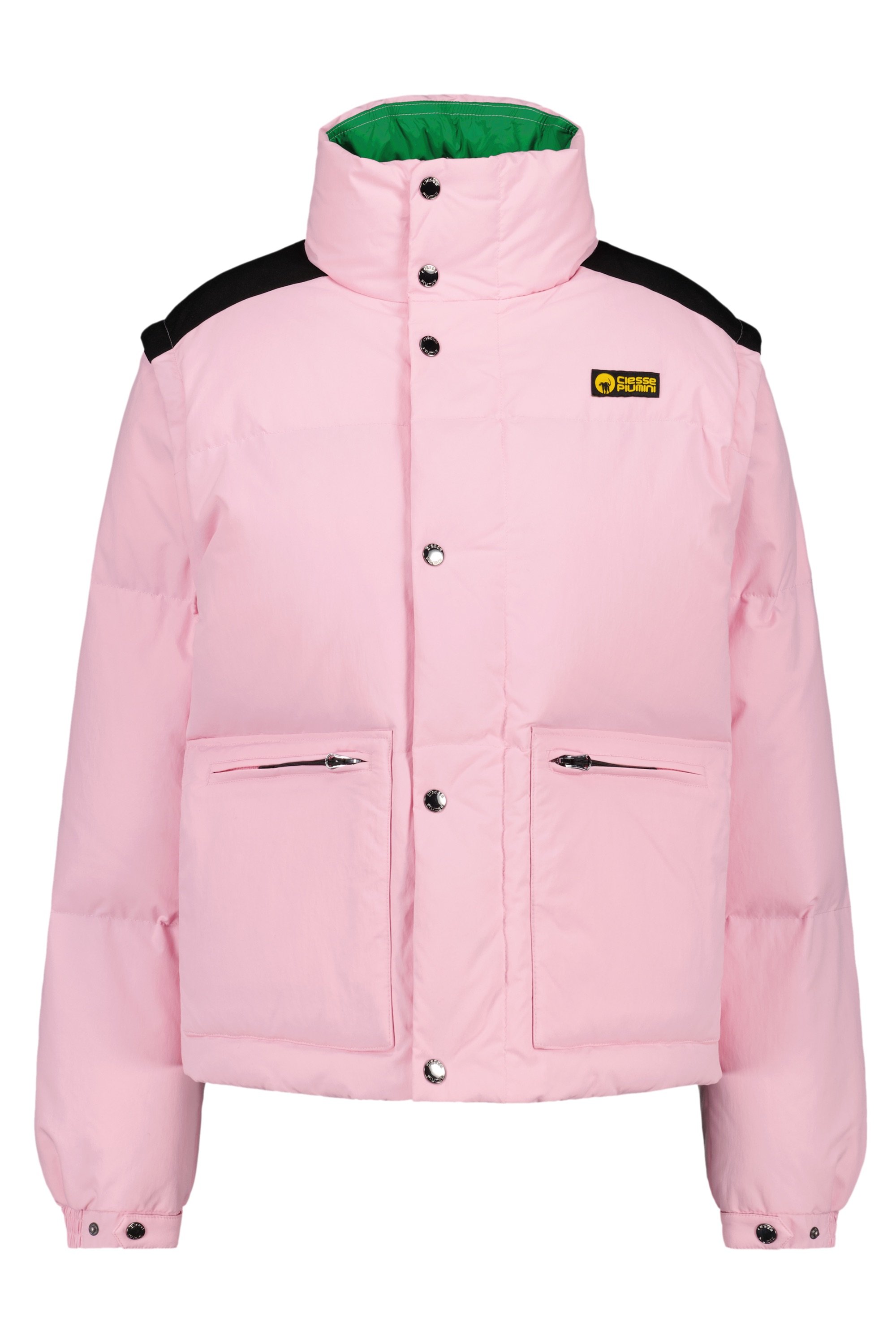 Giacca ibrida realizzata in teddy e nylon lucido con imbottitura polydown.