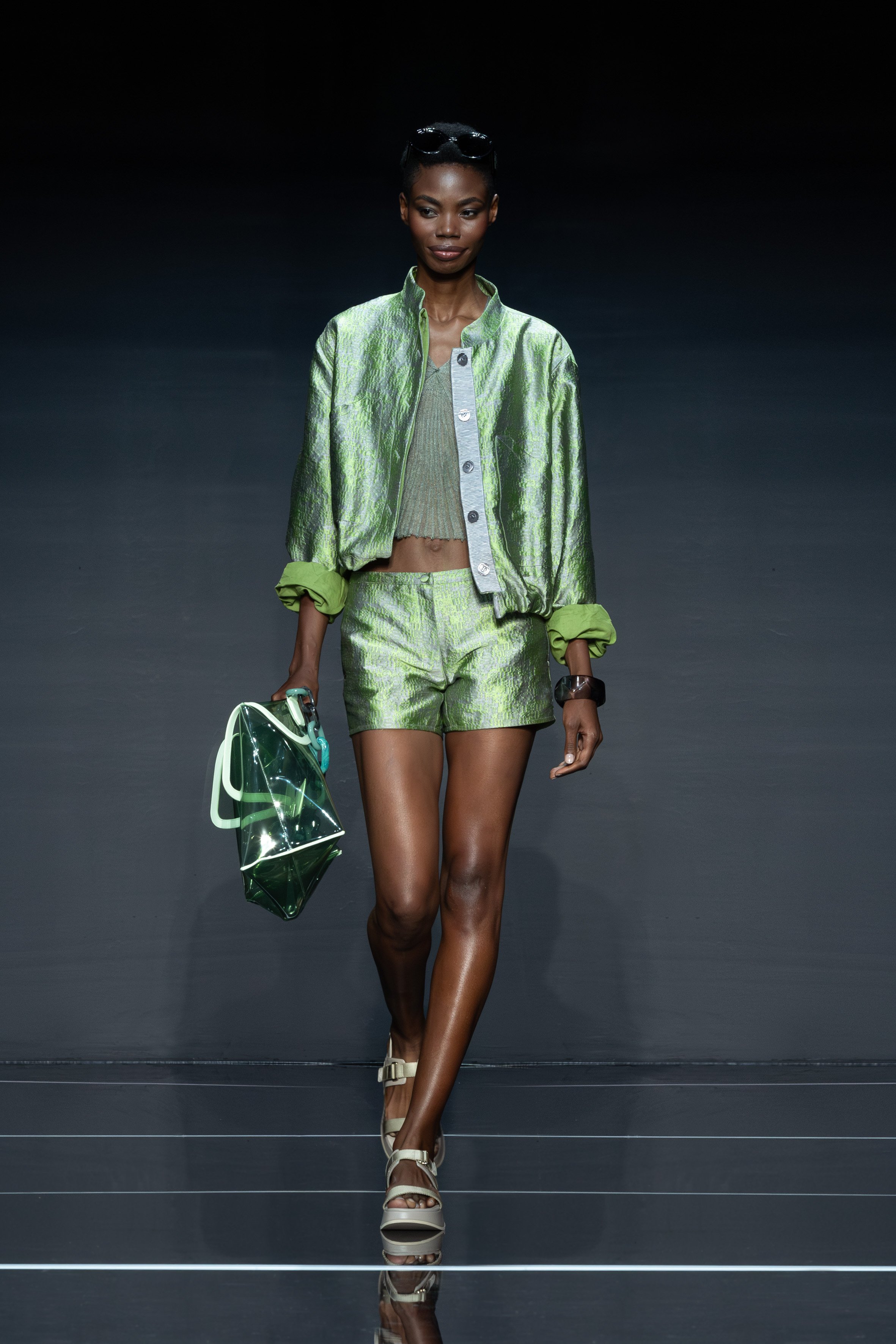 Gli accessori, dalle sacche alle borsine, i bijoux e le scarpe (quelle a punta sono un must-have di stagione) ricalcano la leggerezza d’animo e materica di una ‘brezza’ d’estate, definita da Armani stesso come condizione di uno spirito che tutto pervade.
