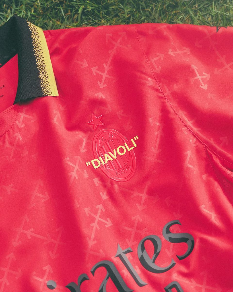 Il kit AC Milan x Off-White si distingue per due varianti cromatiche. La prima maglia presenta una base black che sfuma nel power green nella parte inferiore, con loghi sizzle yellow e dettagli red su colletto e polsini. La seconda versione ha una base red che sfuma nel power green, con crest monocromatico e dettagli giallo acceso. Entrambe le divise sono impreziosite da elementi distintivi di Off-White, tra cui l’iconica zip tie e i nomi dei giocatori riportati tra virgolette, mentre la scritta «Diavoli» campeggia sul petto in omaggio alla storia del Milan.