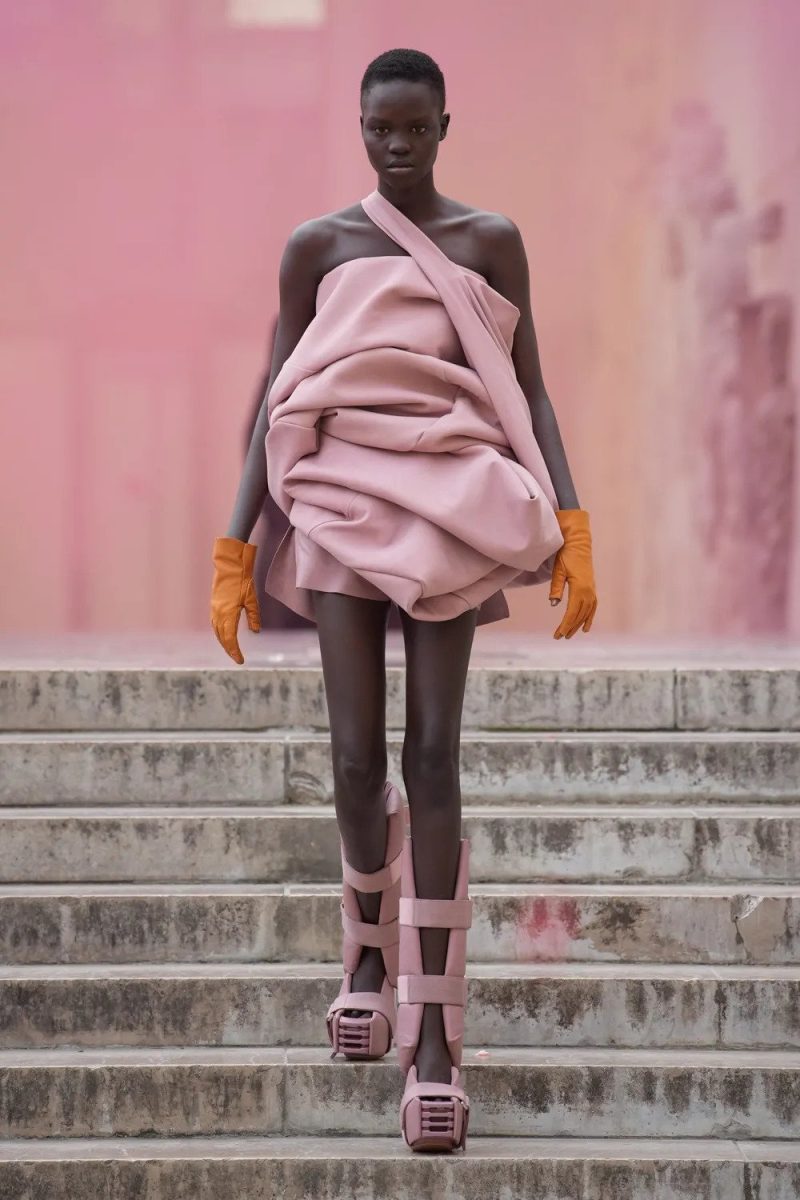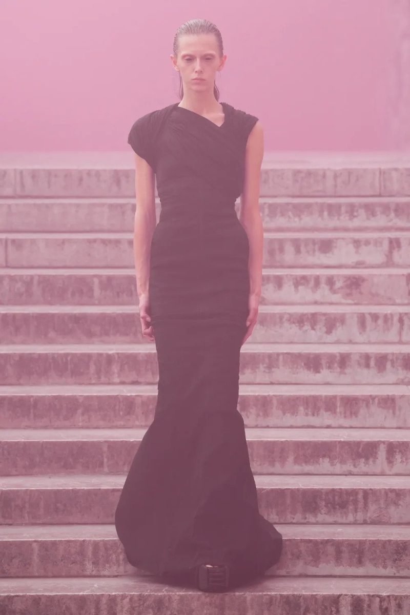 Questo ritrovato ottimismo non ha però intaccato lo stile di Rick Owens. La sua essenza è presente in ogni capo, anche quando il nero lascia spazio a tinte più delicate.