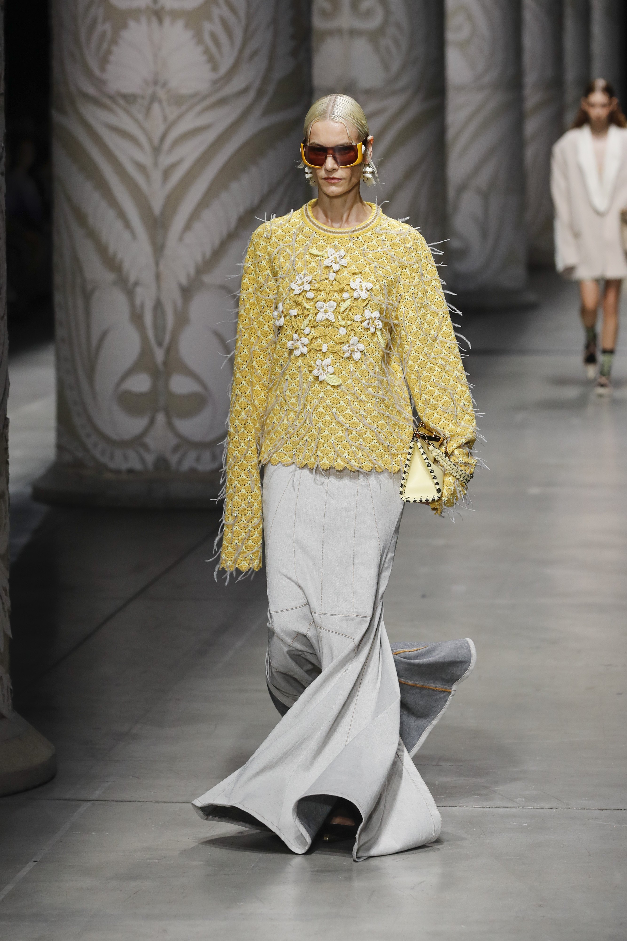 Originale anche il maglione a trecce larghe bianche “sporcate” di nero di Egonlab dalle maniche lunghissime, lunghezza che sceglie di adottare anche Etro per il suo maglione giallo con piume e fiori annessi. E poi ancora, il maxi sweater di Loewe per look non convenzionali e i vari layering di n21 per outfit nostalgici, come dettano le tendenze del momento.