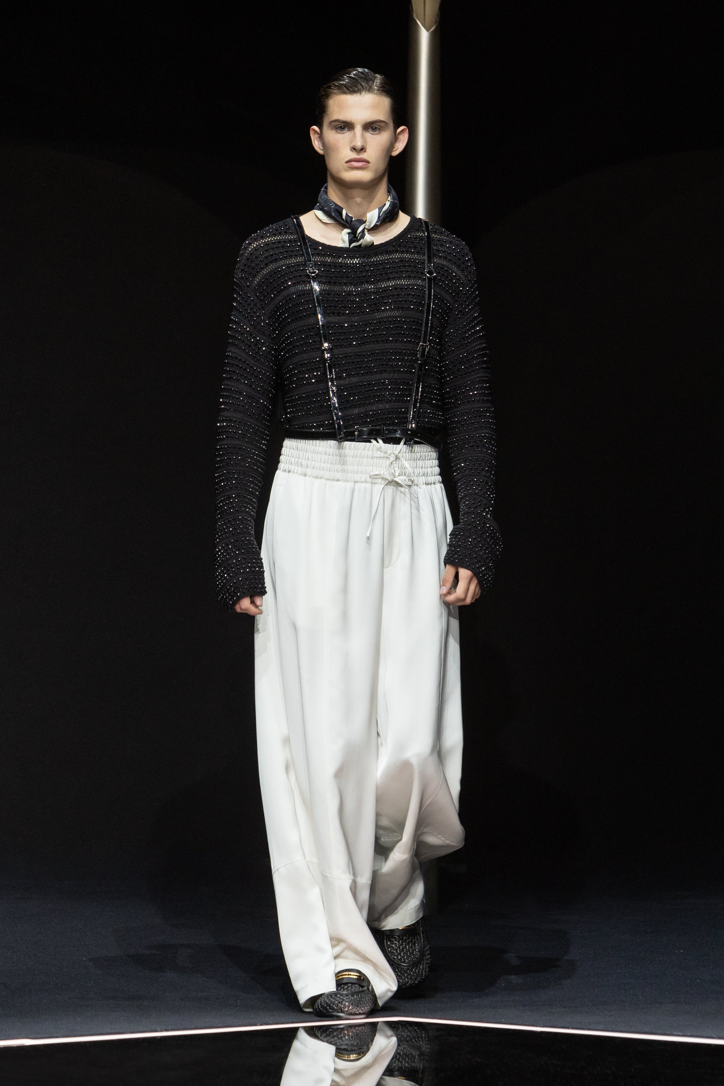 “Dei giovani di oggi mi piace la libertà assoluta rispetto ai codici- riprende Giorgio Armani – indossano capi da sera anche di giorno, risultando sempre credibili. La notte come idea, modo di essere, illuminata da un chiaro di luna: è questa il tema che ho voluto esplorare.”