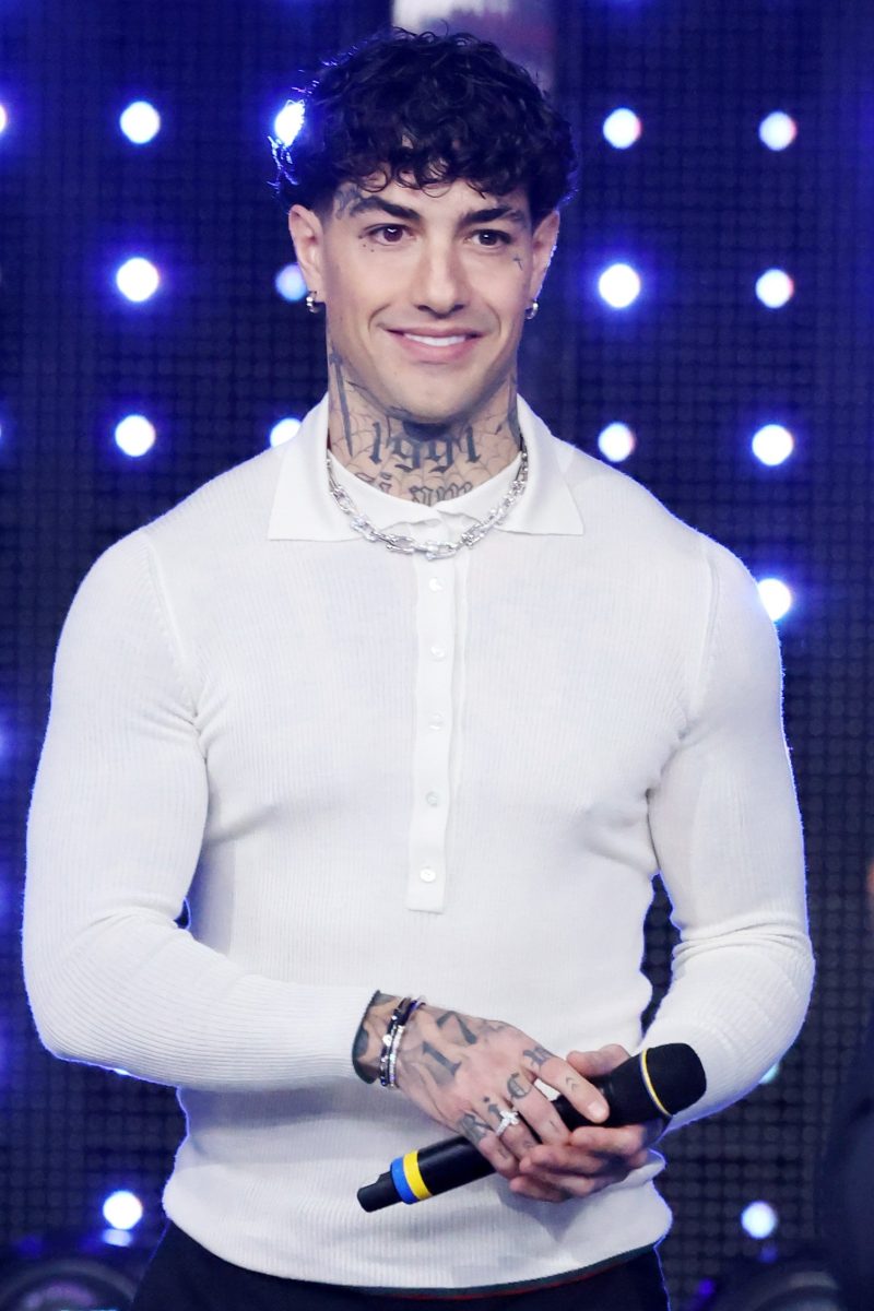 Il chiacchieratissimo Tony Effe è arrivato a Sarà Sanremo in un semplice completo Gucci, arricchito però da una cascata di diamanti Tiffany & Co.